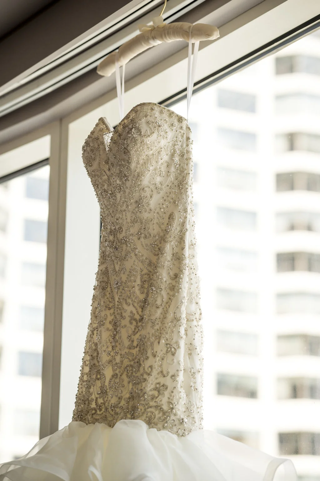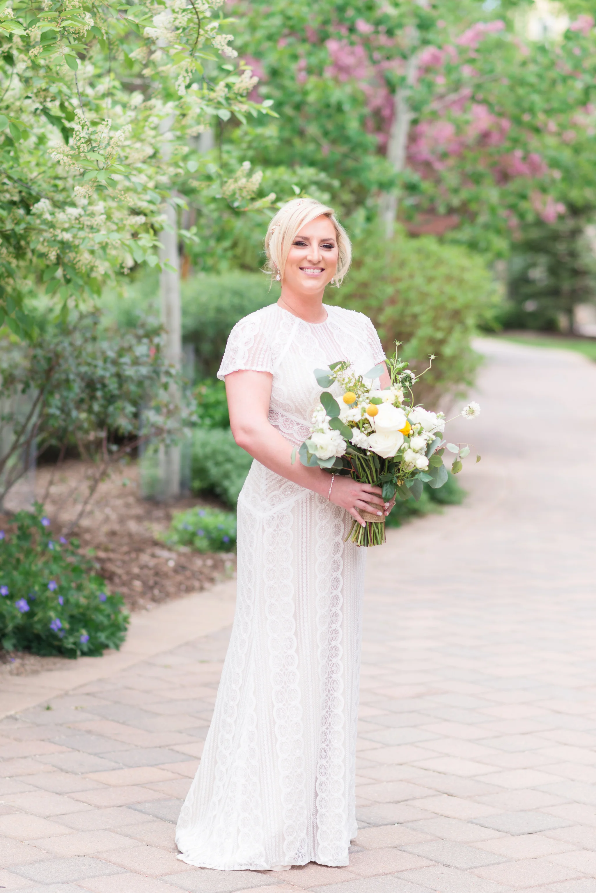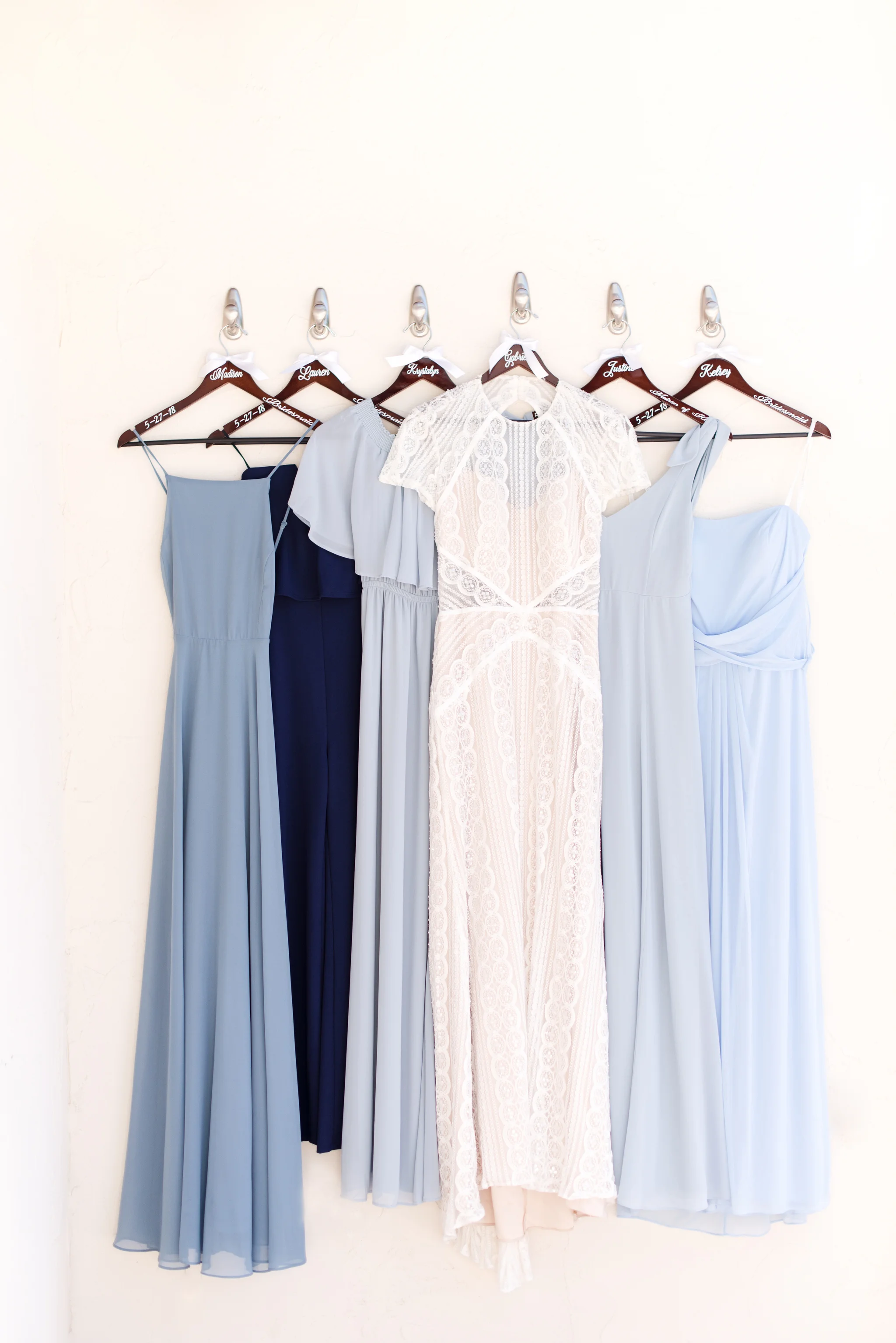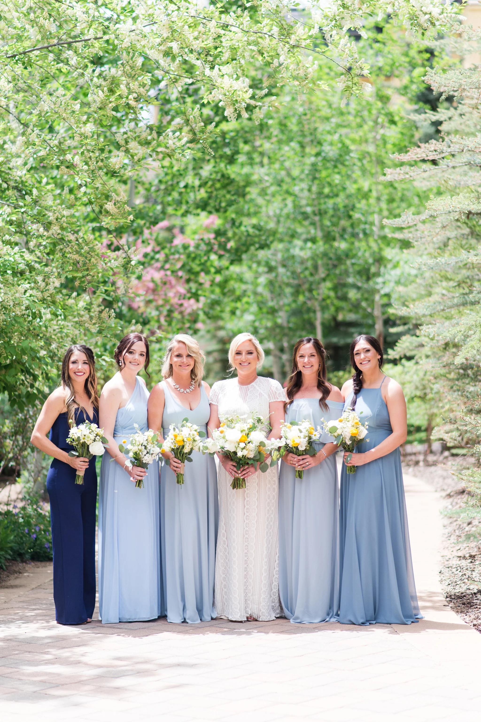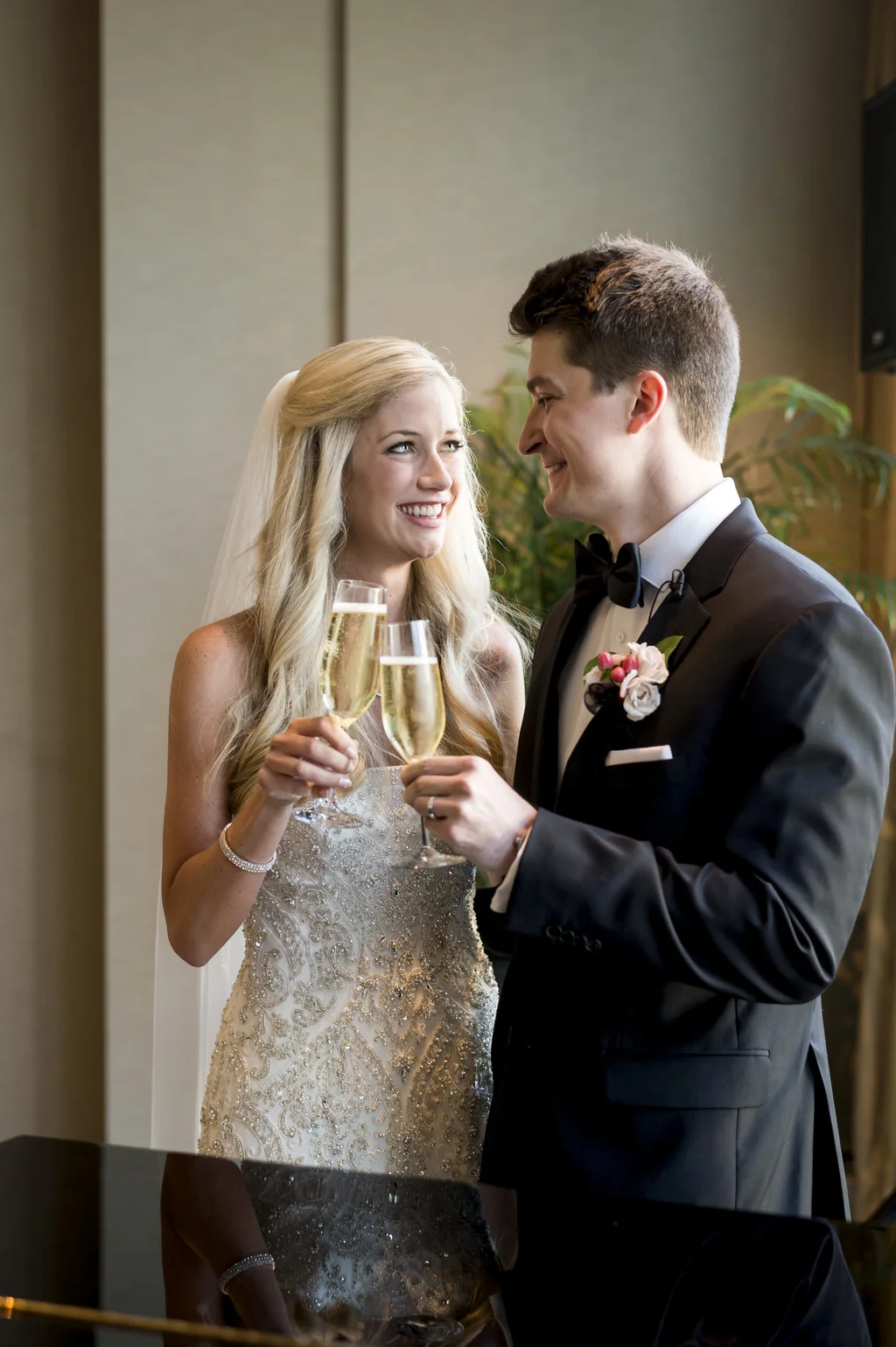 “An intimate affair of under 100 guests, Chelsea and Kevin’s Chicago summer wedding was nothing short of timeless and sentimental. The couple tied the knot at The Trump Tower in Chicago and followed with a reception at the same location. The overall wedding aesthetic centered around their dusty blue, pink and white color palette and when asked to describe her wedding, the bride described it as classic and elegant.”