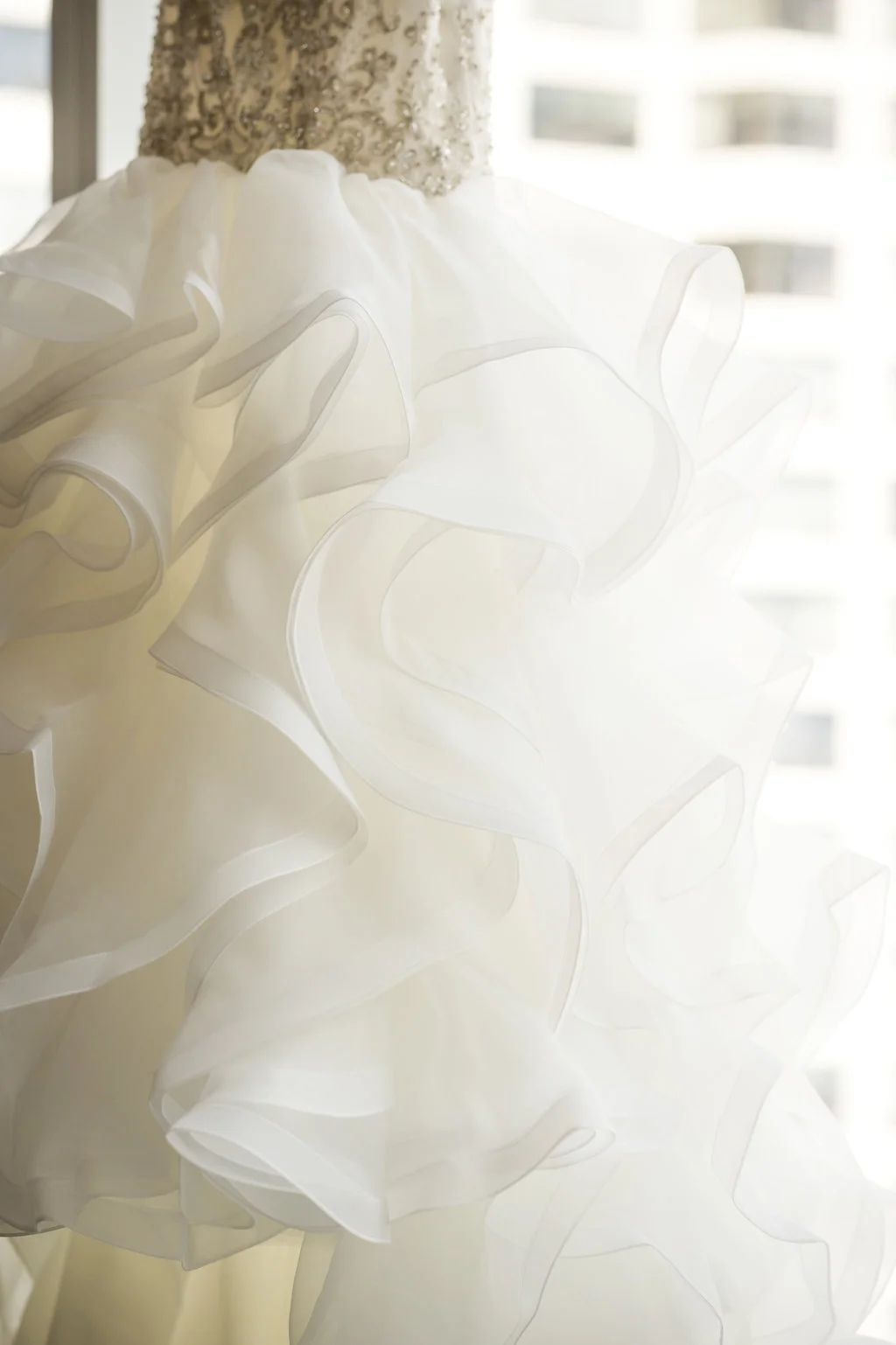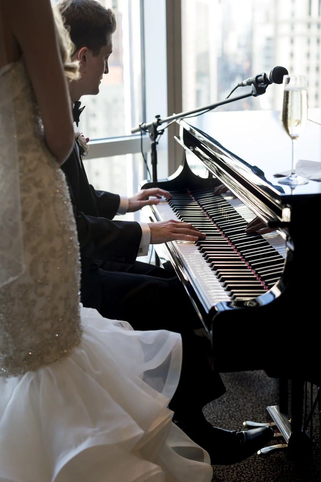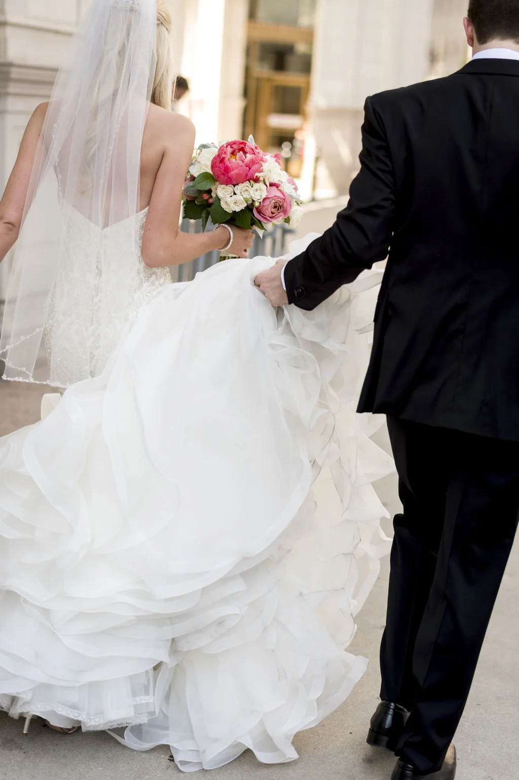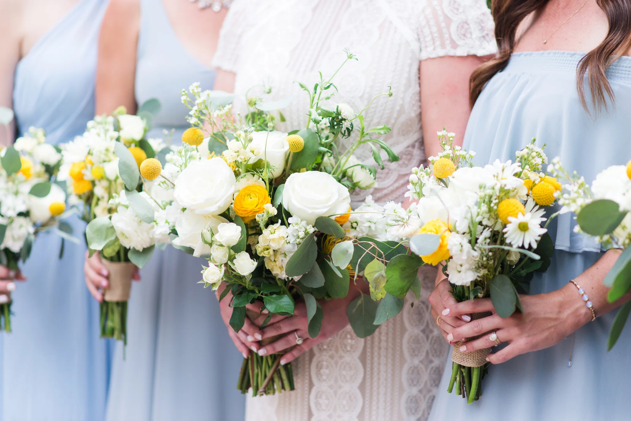 “An intimate affair of under 100 guests, Chelsea and Kevin’s Chicago summer wedding was nothing short of timeless and sentimental. The couple tied the knot at The Trump Tower in Chicago and followed with a reception at the same location. The overall wedding aesthetic centered around their dusty blue, pink and white color palette and when asked to describe her wedding, the bride described it as classic and elegant.”