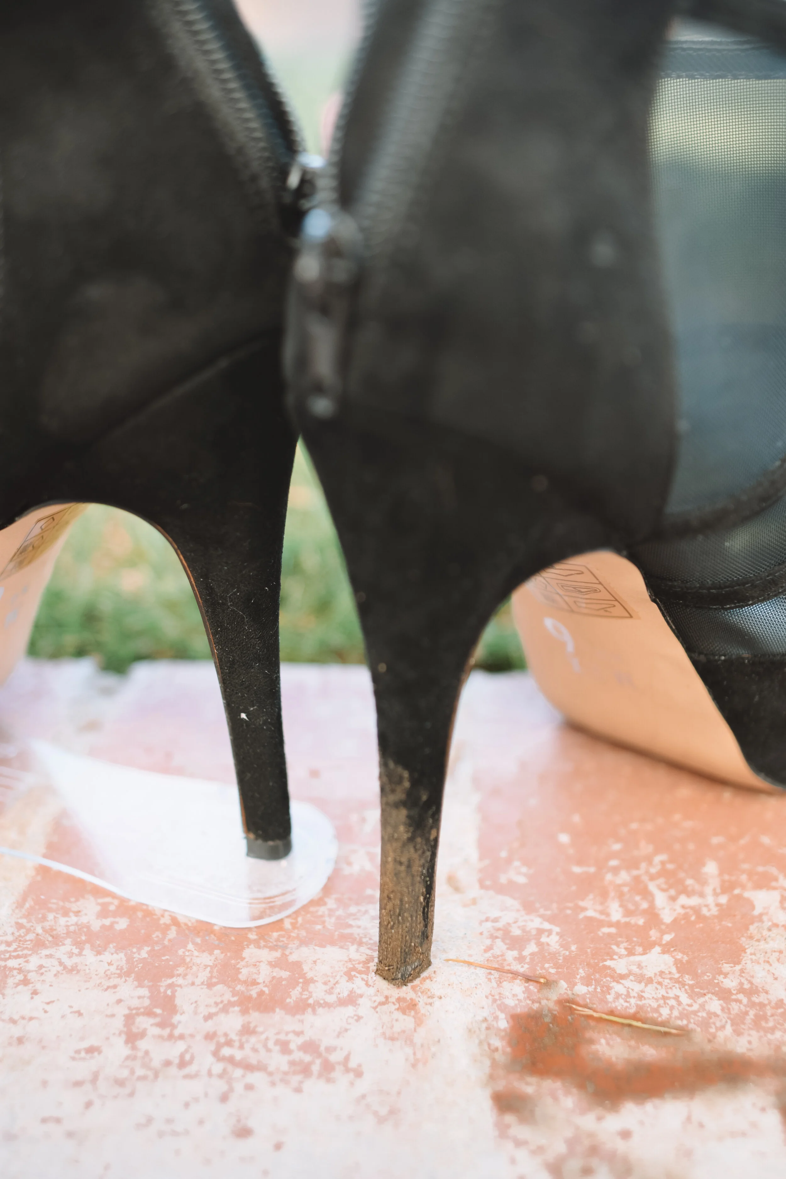 Whether you’re the bride, a bridesmaid or a wedding guest, attempting to trek through grass and dirt on your wedding day is a pain in the butt. Yep, I said it. Getting dressed up is fun but heels getting stuck in the grass and mud — not so much. Not only does it destroy those heels (I mean, look at that photo below), but it’s kind of stressful attempting to walk without getting stuck or even worse, tripping and falling.