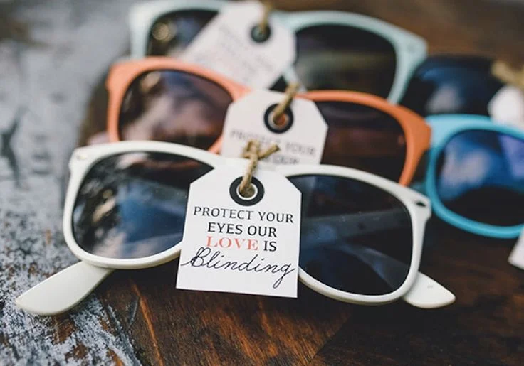 Blankets for them to snuggle up with during your ceremony or for an outdoor reception, or even some personalized sunglasses to keep them from squinting all ceremony long!