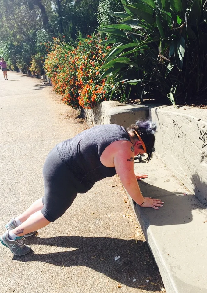 If you prefer to do burpees in the grass, more power to you! If you’re a beginner and burpees are a bit more difficult for you, try a low bench at the park.
