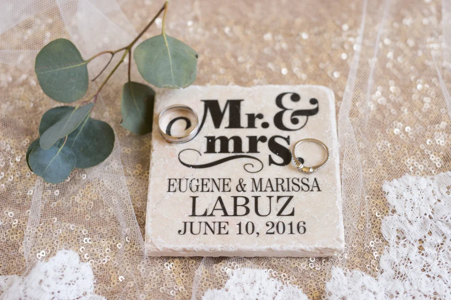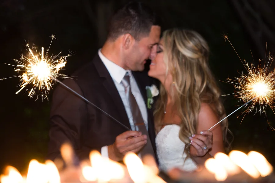 The ceremony was held on site in front of a really cool yellow wall, adorned with tons of tea light candles. Once they exchanged vows and rings, Eugene dipped his new bride for their first kiss. And the reception was so pretty! There were gold mercury votive candles, gorgeous floral centerpieces, gold chiavari chairs and a the sweetheart table had a cute Mr & Mrs banner hanging from it. The bridal party blasted the newlyweds with confetti during their grand entrance right before the couple shared their first dance to “From the Ground Up” by country duo Dan & Shay. The night ended with Marissa and Eugene outside by the fire pit for some sparkler exit photos with their friends. nd the new husband and wife headed off to their honeymoon in Barcelona and Italy #labuzinlove