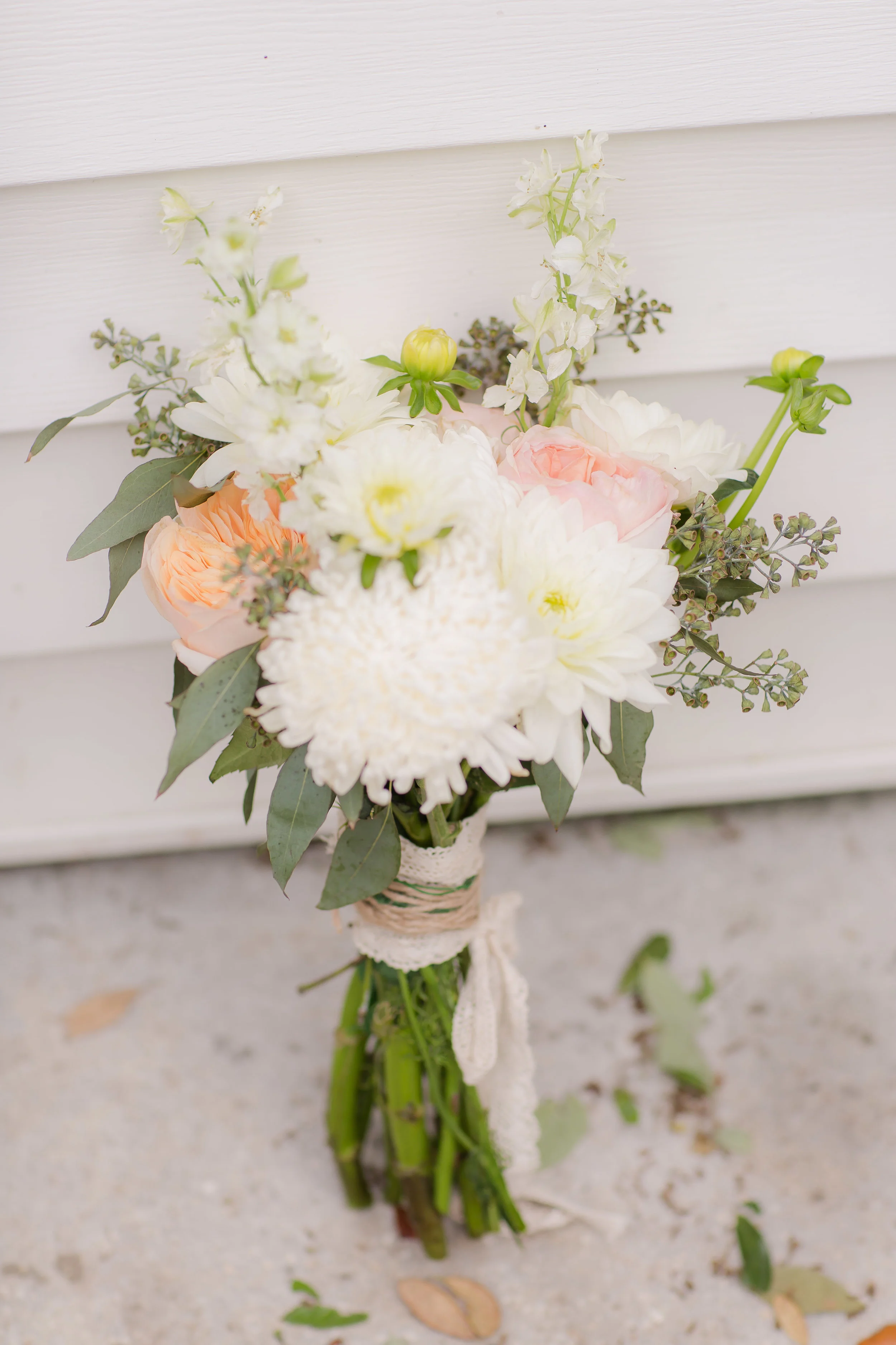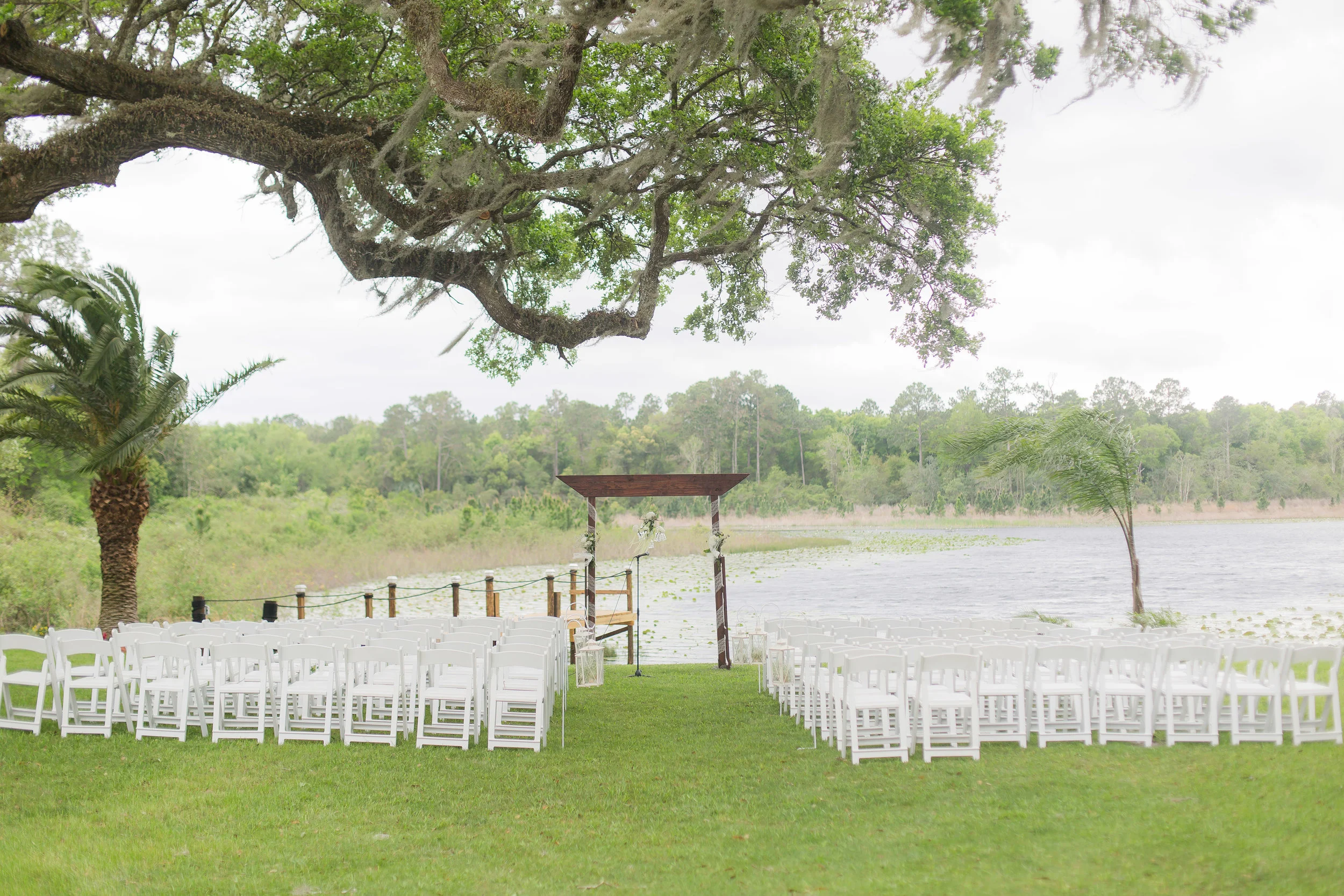 "Laura and Sean were married in April on Laura's father's lakefront property in DeLand Florida. Their sweet wedding was very detailed and the bride and groom did most of it themselves. Laura and her husband did an amazing job choosing a design and beautiful florals. Their day was met with drizzles and hurricane winds (seriously 50mph wind gusts) and they lost a tent but luckily had 3!). But the weather did not stop them from enjoying every last second! Laura and Sean had the outdoor wedding of their dreams!" -- PSJ Photography