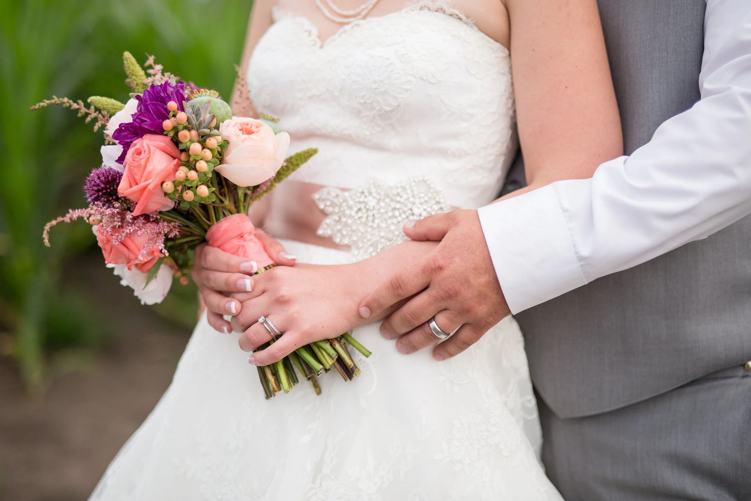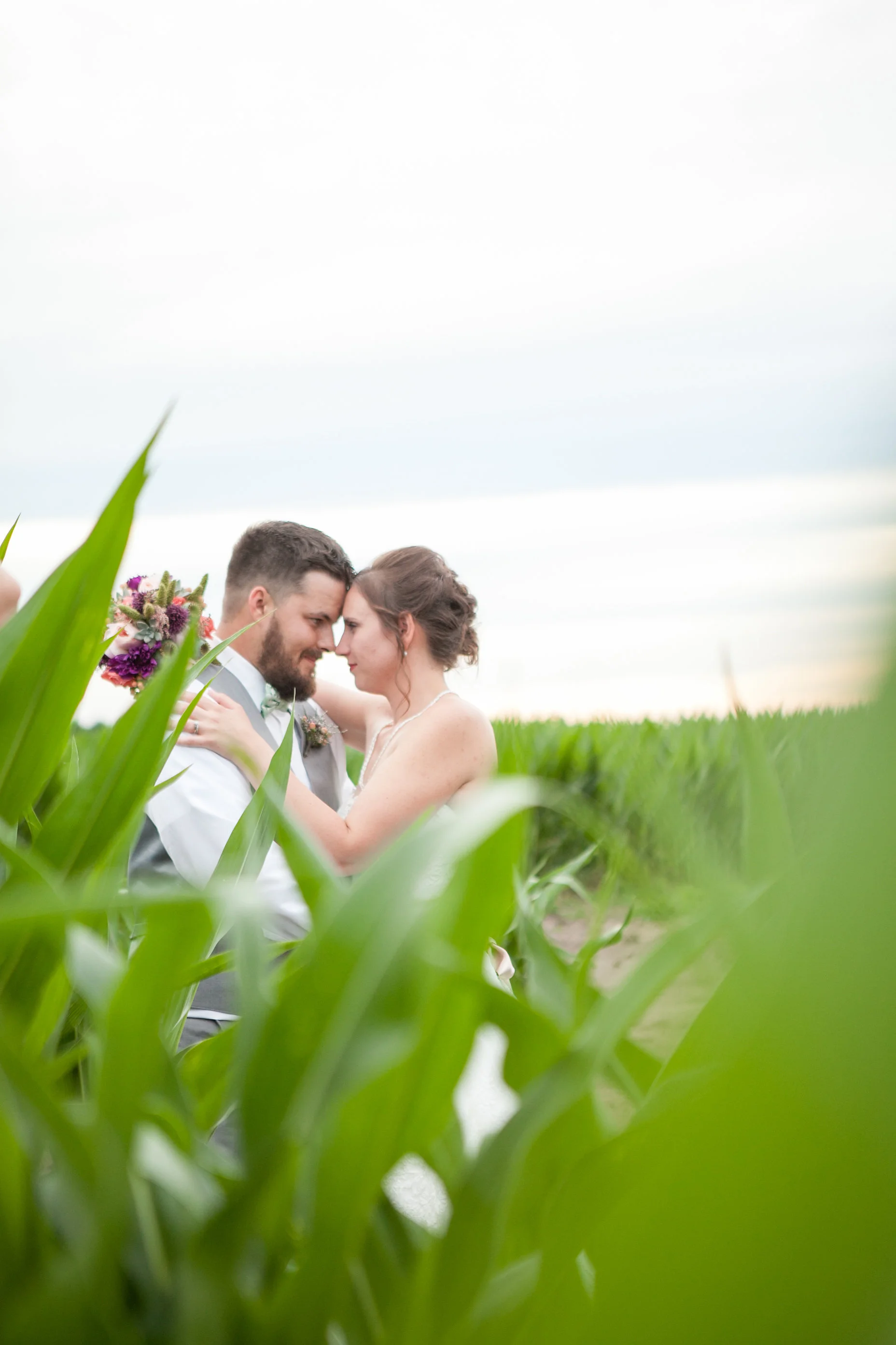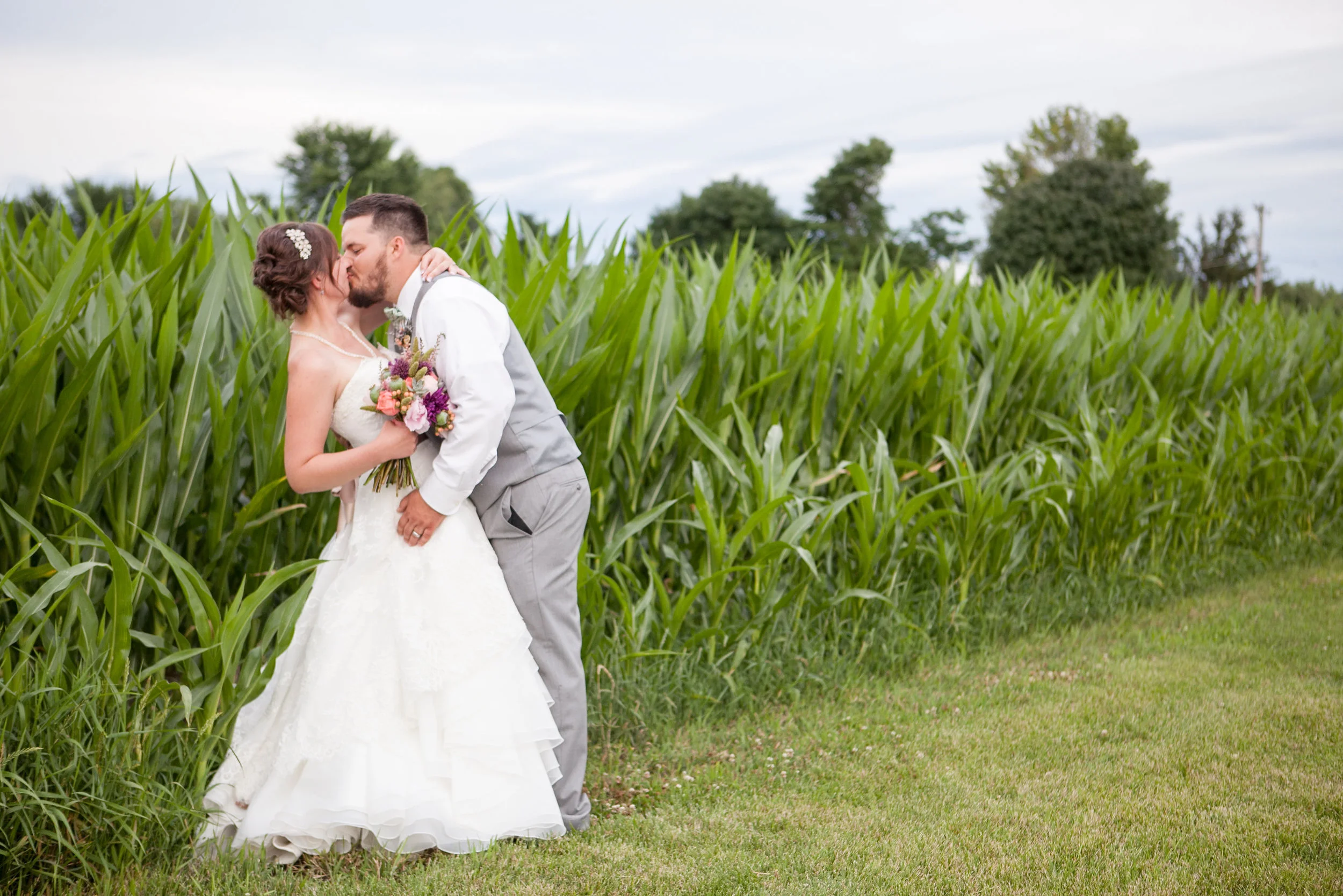 Their guests first arrived and gathered for their ceremony, which was romantically tucked in the corner of the property with a gorgeous backdrop of trees and corn fields. After saying I do, we headed to the shed, which was gorgeously decorated in decor from Behren's Blumen Stuff! The gorgeous white linens truly allowed the centerpieces to add the perfect pop of color to the event. We loved having the privilege of being a part of their wedding planning adventure and wedding day, and we wish them the happiest forever together!