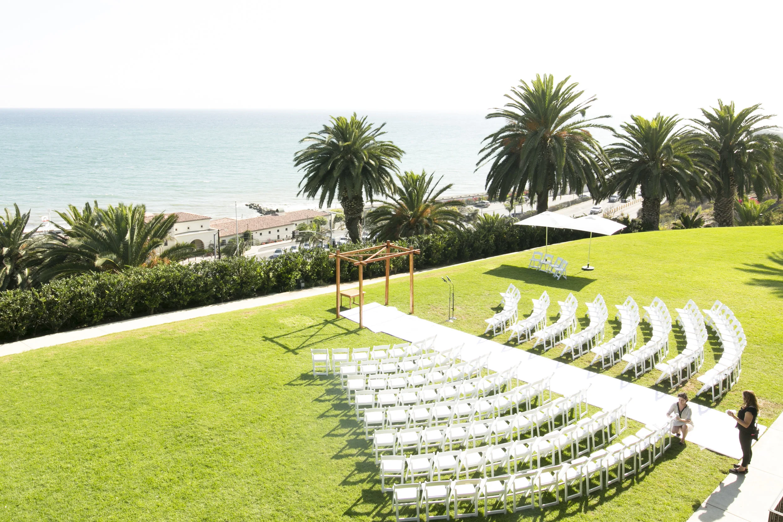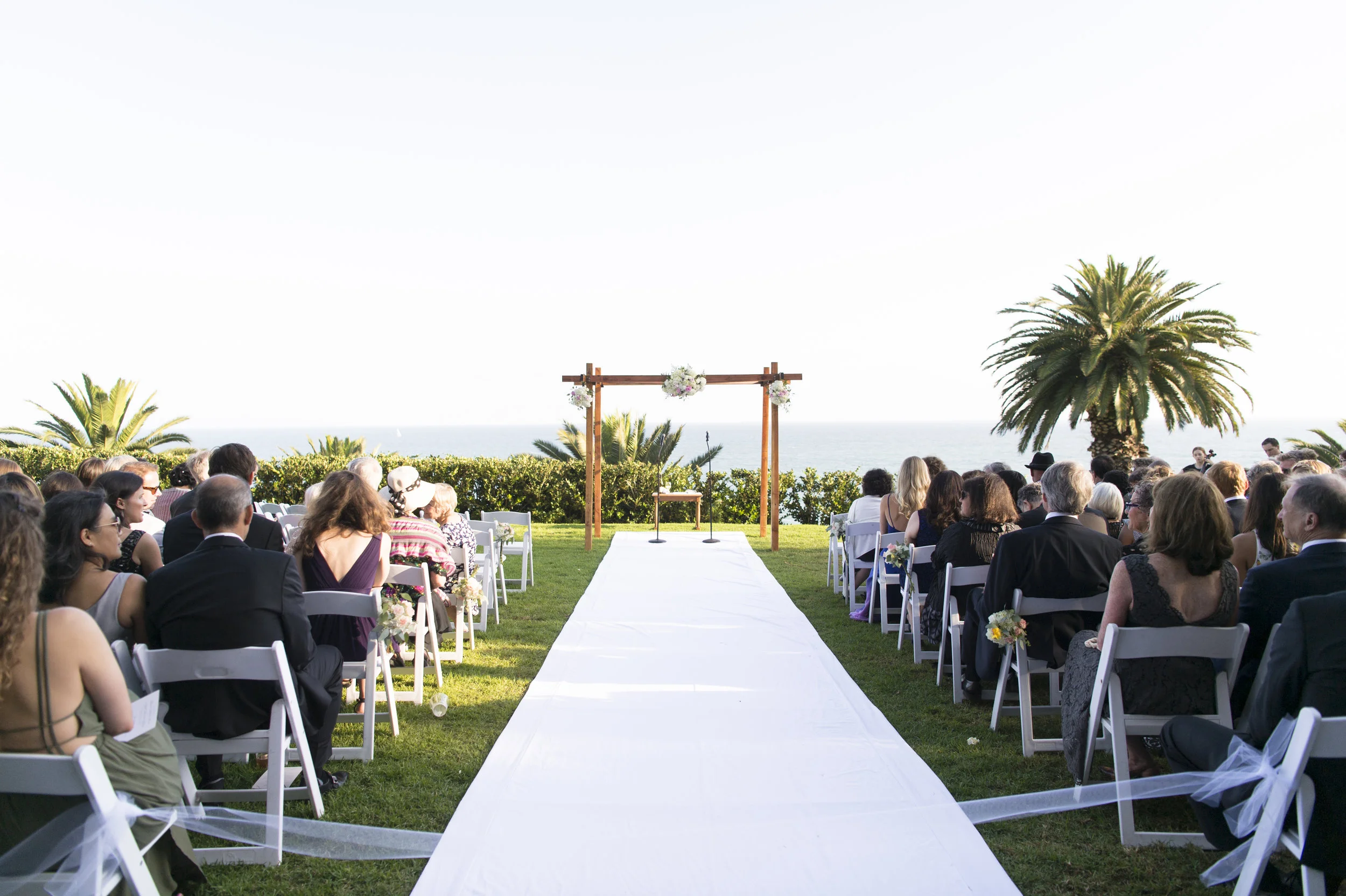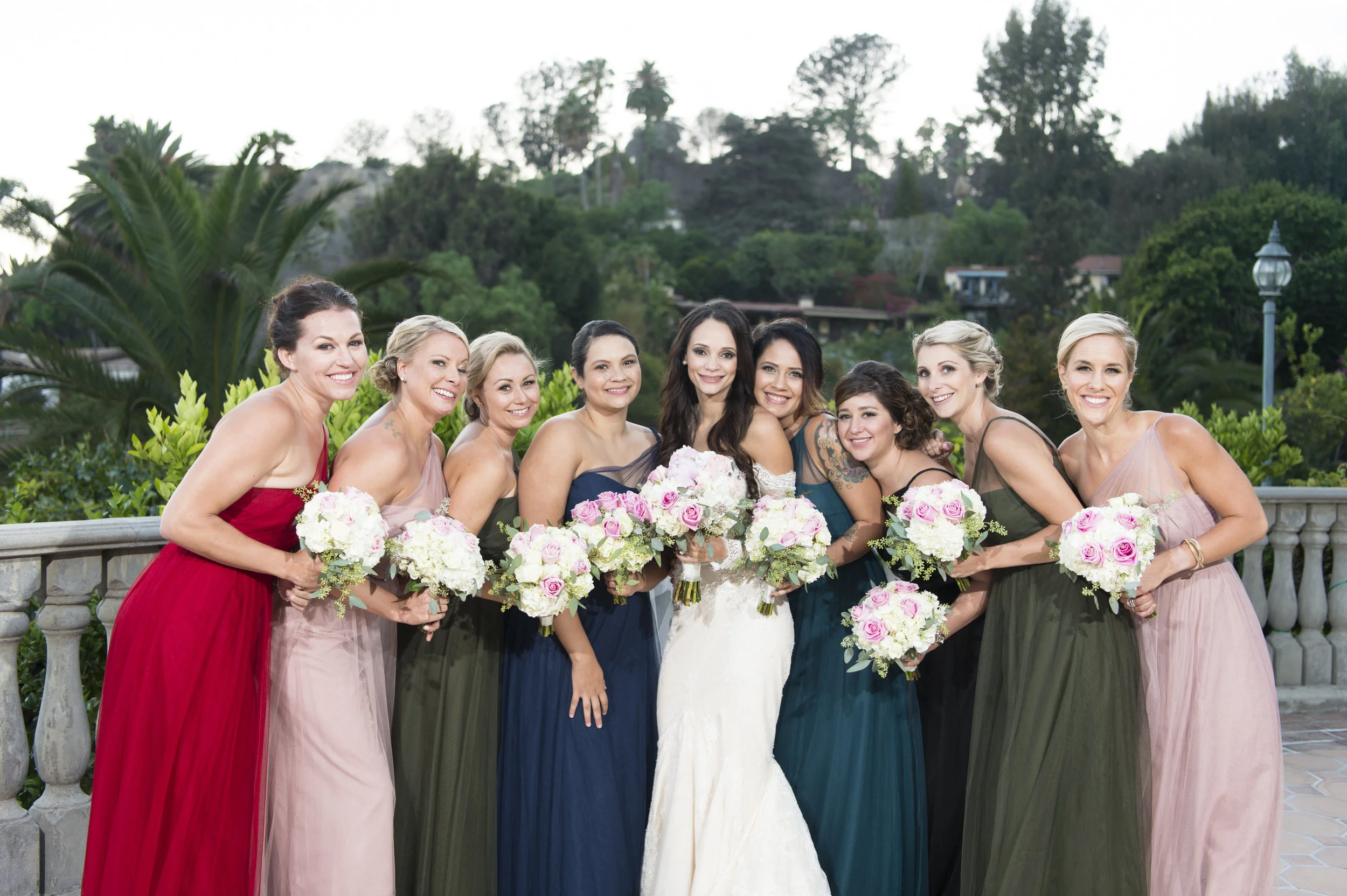 Raquel and Elliott's inter-faith wedding and reception was held at the historic Bel-Air Bay Club. An August wedding, the Southern California weather was perfect for a beach side wedding. A beautiful arch framed the ocean as Raquel descended onto the lawn ceremony site to a string quartet playing 'Beautiful Tonight.' Her bridesmaids wore a rainbow of colors, each offering a little hint of their personalities.