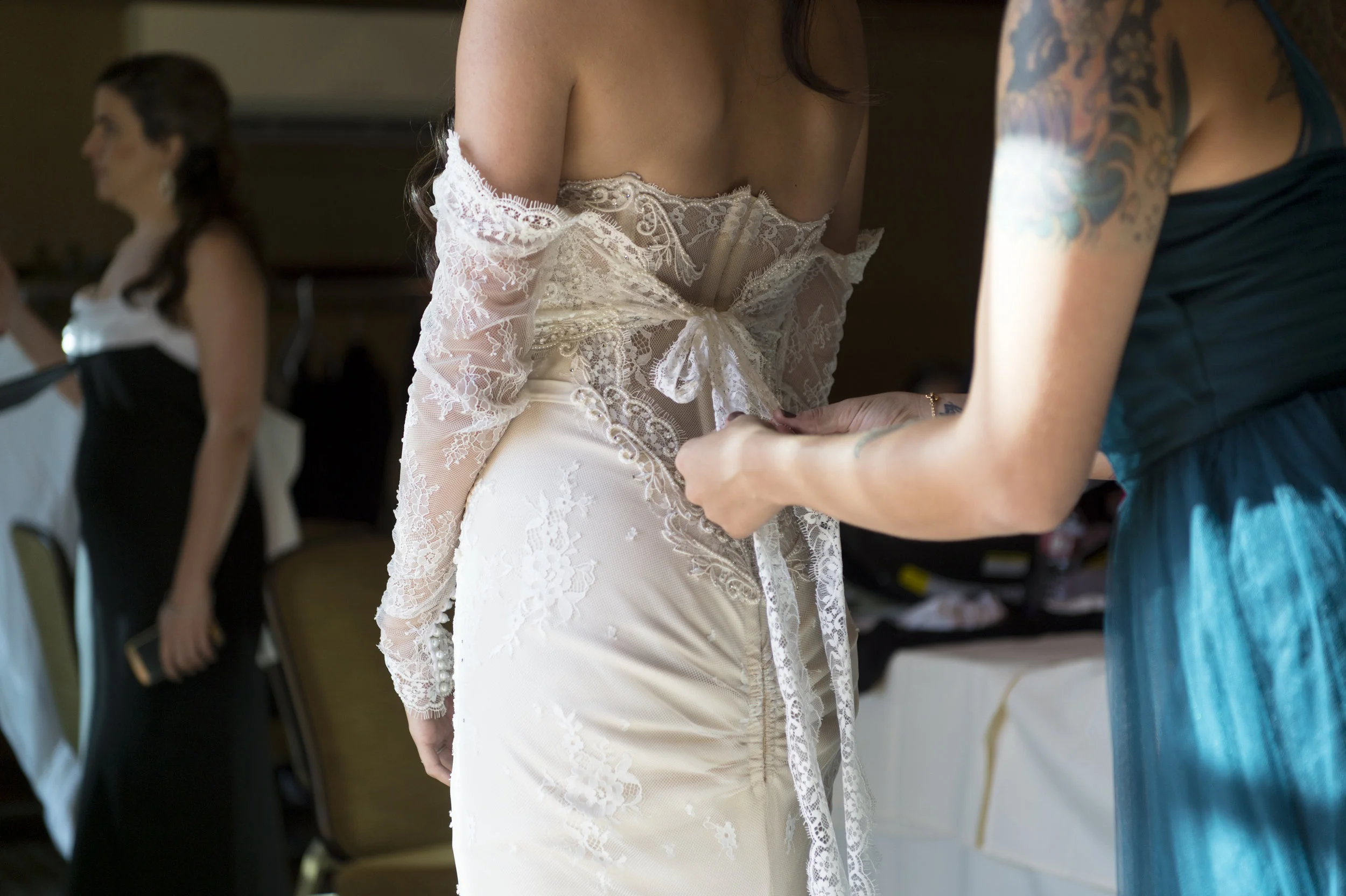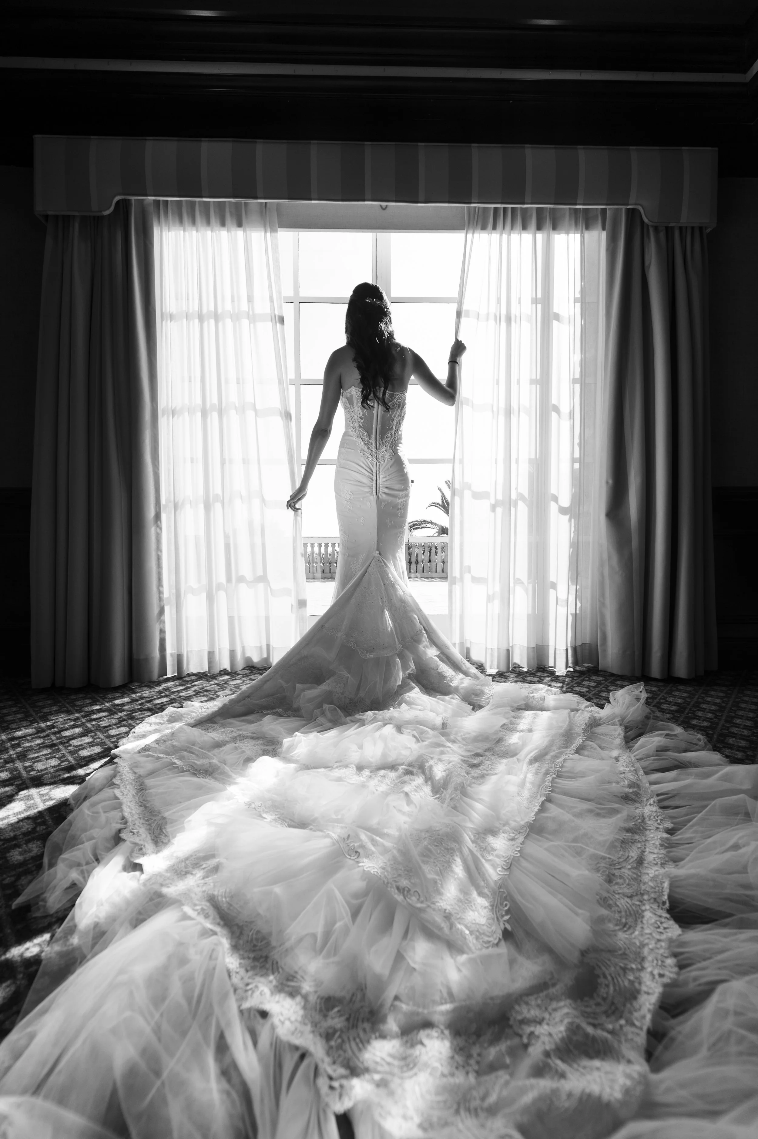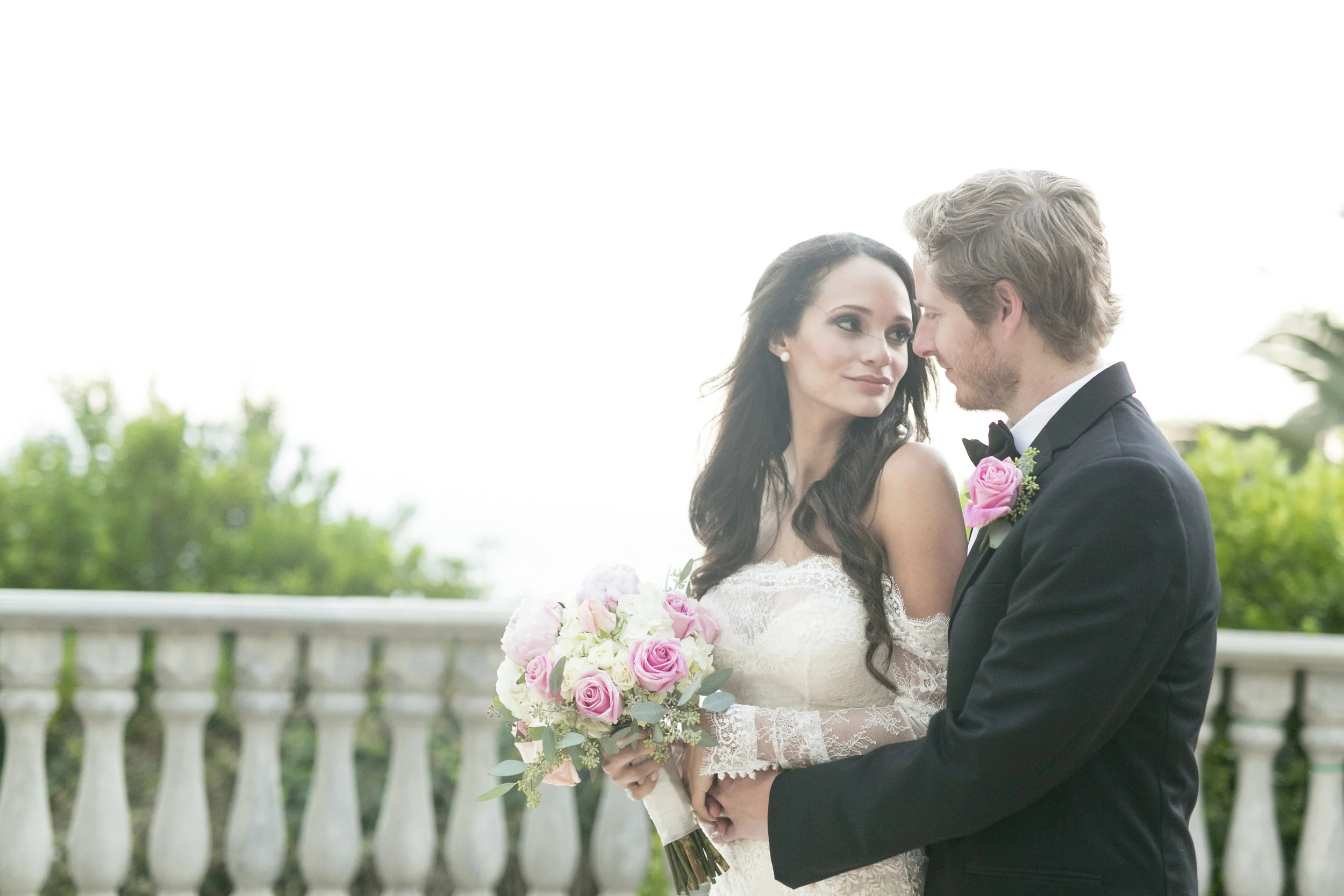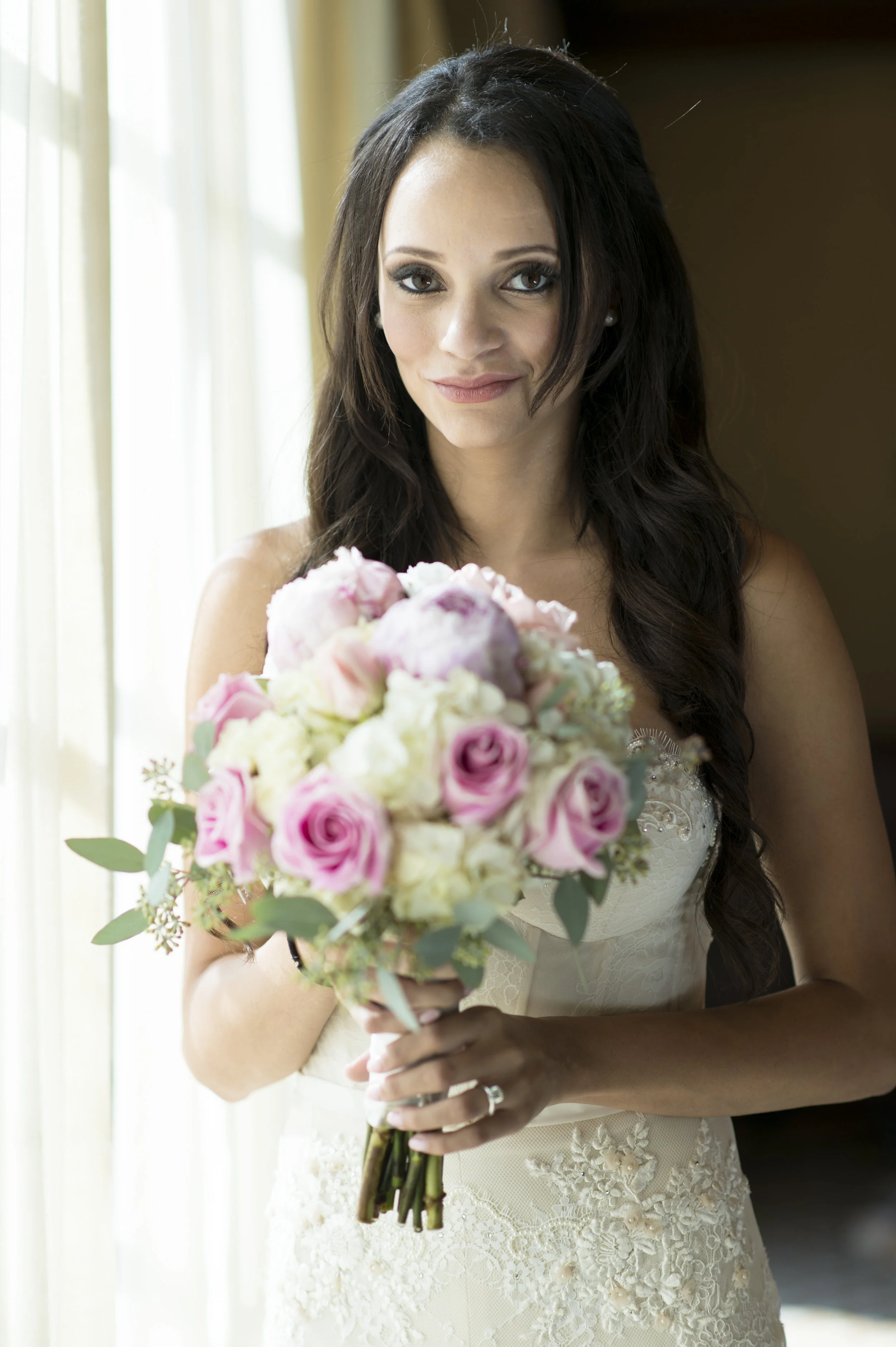 Raquel and Elliott's inter-faith wedding and reception was held at the historic Bel-Air Bay Club. An August wedding, the Southern California weather was perfect for a beach side wedding. A beautiful arch framed the ocean as Raquel descended onto the lawn ceremony site to a string quartet playing 'Beautiful Tonight.' Her bridesmaids wore a rainbow of colors, each offering a little hint of their personalities.