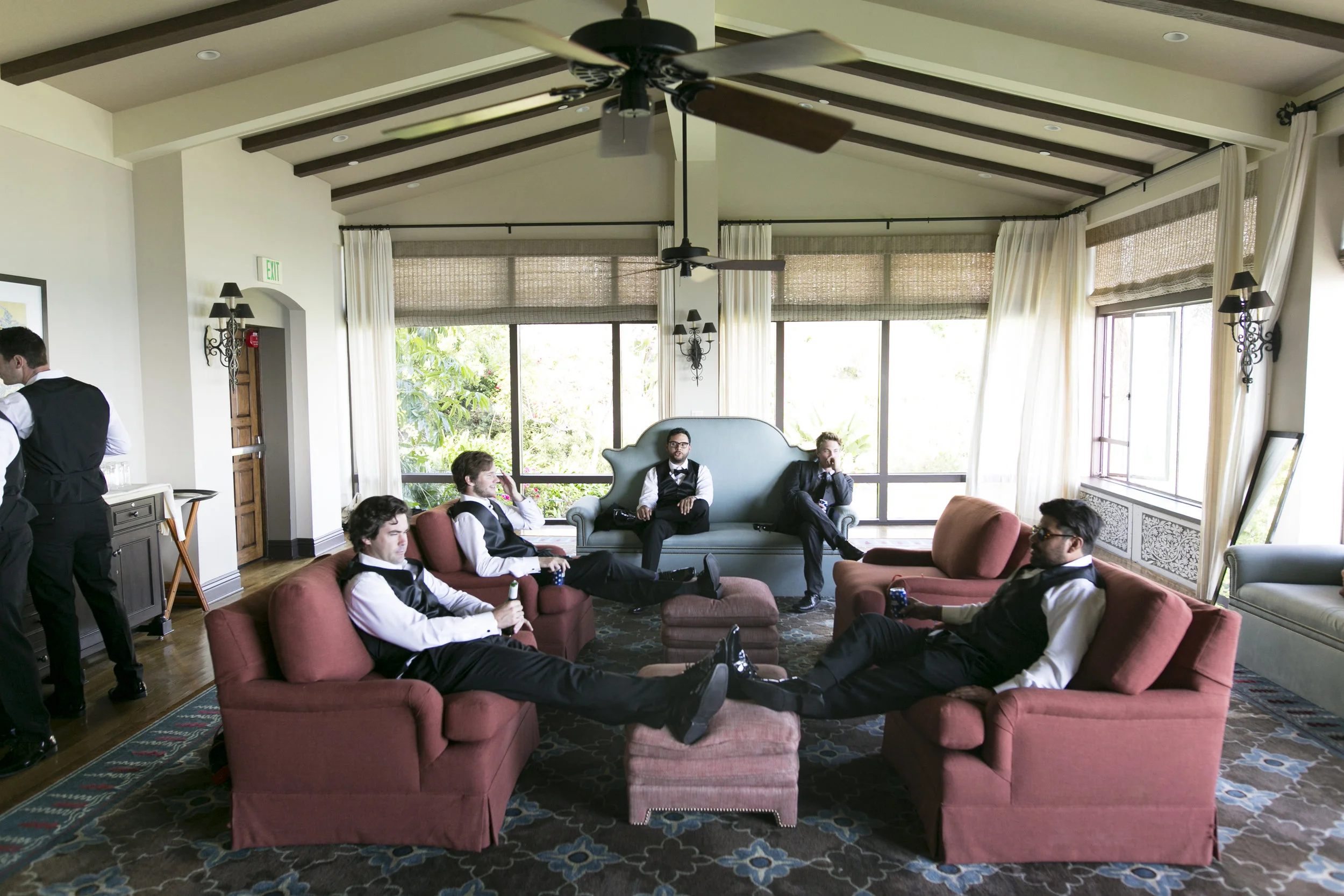 At the ceremony conclusion, guests journeyed up to the patio and living room where they were greeted with cocktails, a live trio of musicians and a station of savory treats. The couple, not wanting to miss out on the revelry, joined in too!