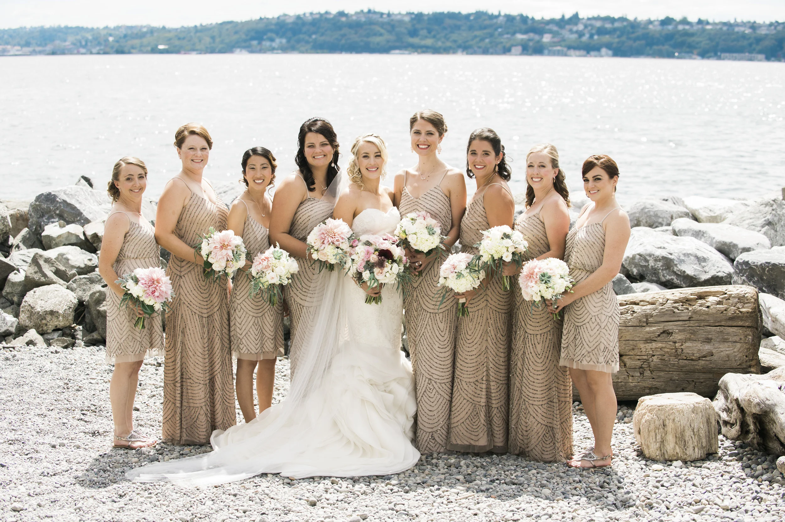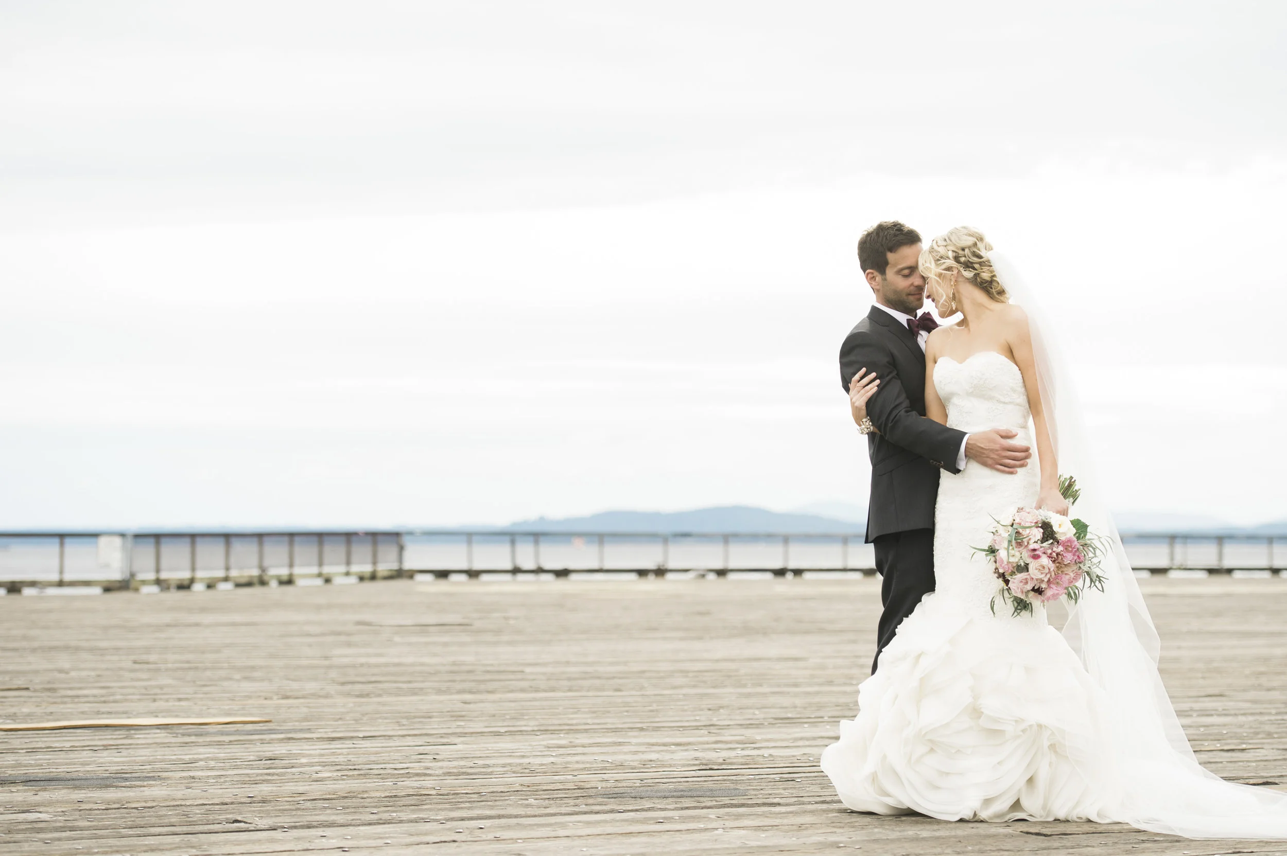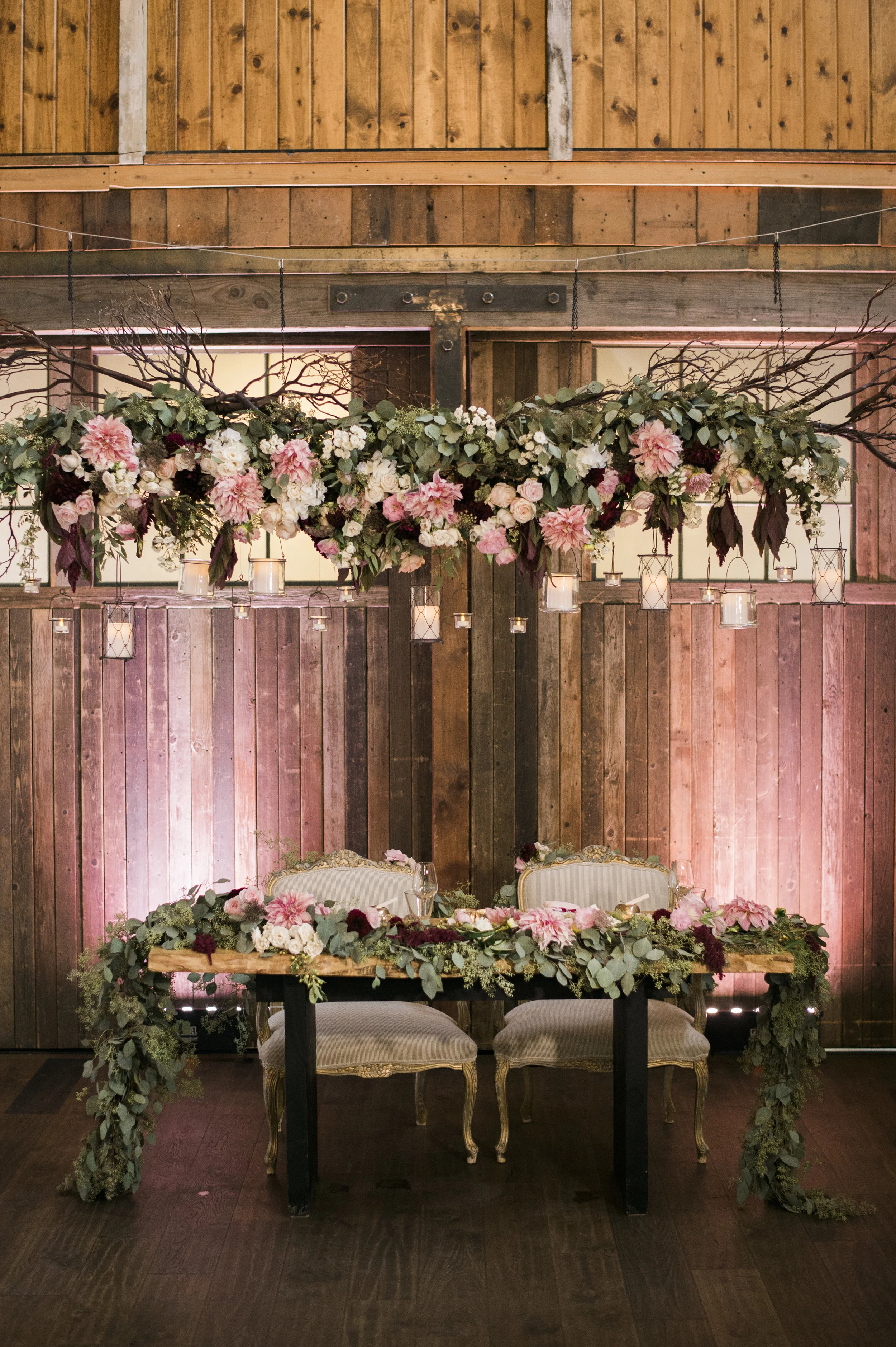 "For their intimate Seattle wedding, Emily and Darren wanted to showcase their love for cocktails along with Emily’s impeccable style. Holly with Perfectly Posh Events planned and designed their special day around a romantic garden in an industrial chic venue with classic vintage pieces and touches of glitz and glamour. A color palette of blush, gold, ivory, and a pop of romantic burgundy complimented the abundance of greenery that was used in the florals from Floressence.