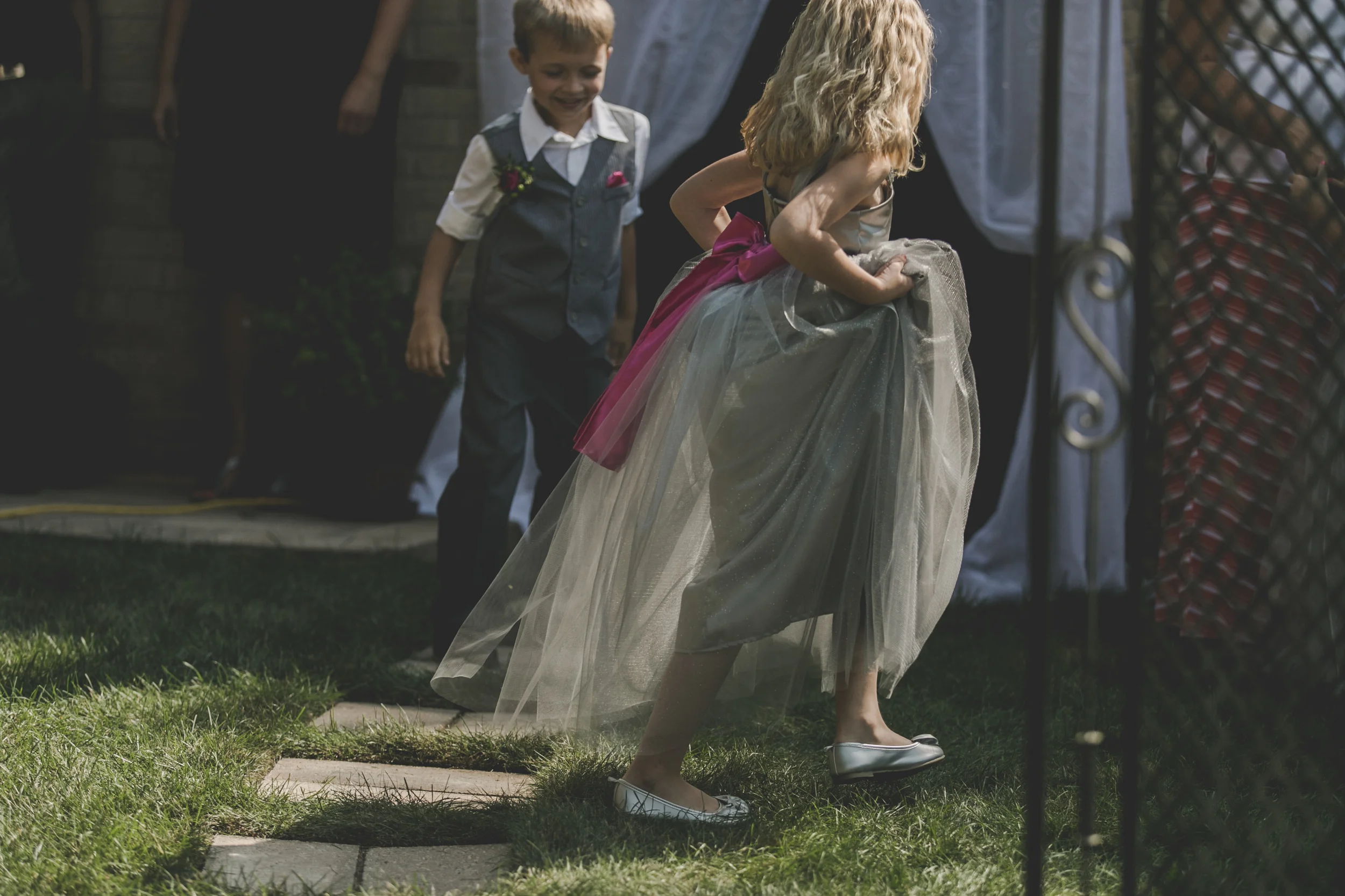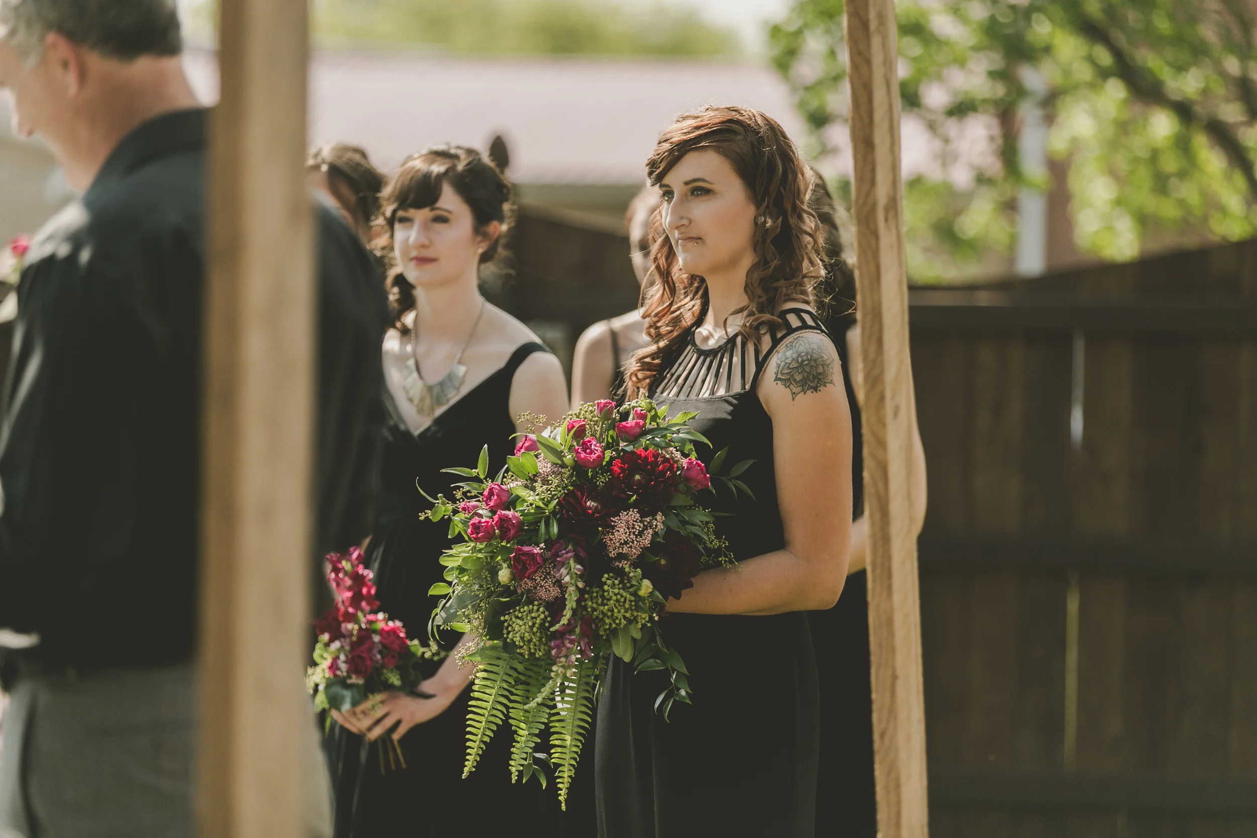 With a love of Star Wars, music, and working with children in their careers, Jessica and Andrew dreamed of an intimate backyard wedding with their closest loved ones. Family and friends planned every step of the way and made the big day come to reality—Jessica’s father landscaped the backyard, created a rustic arch, and hung a chandelier at the altar while her Mom decorated the entire reception hall alongside her aunt and grandma.