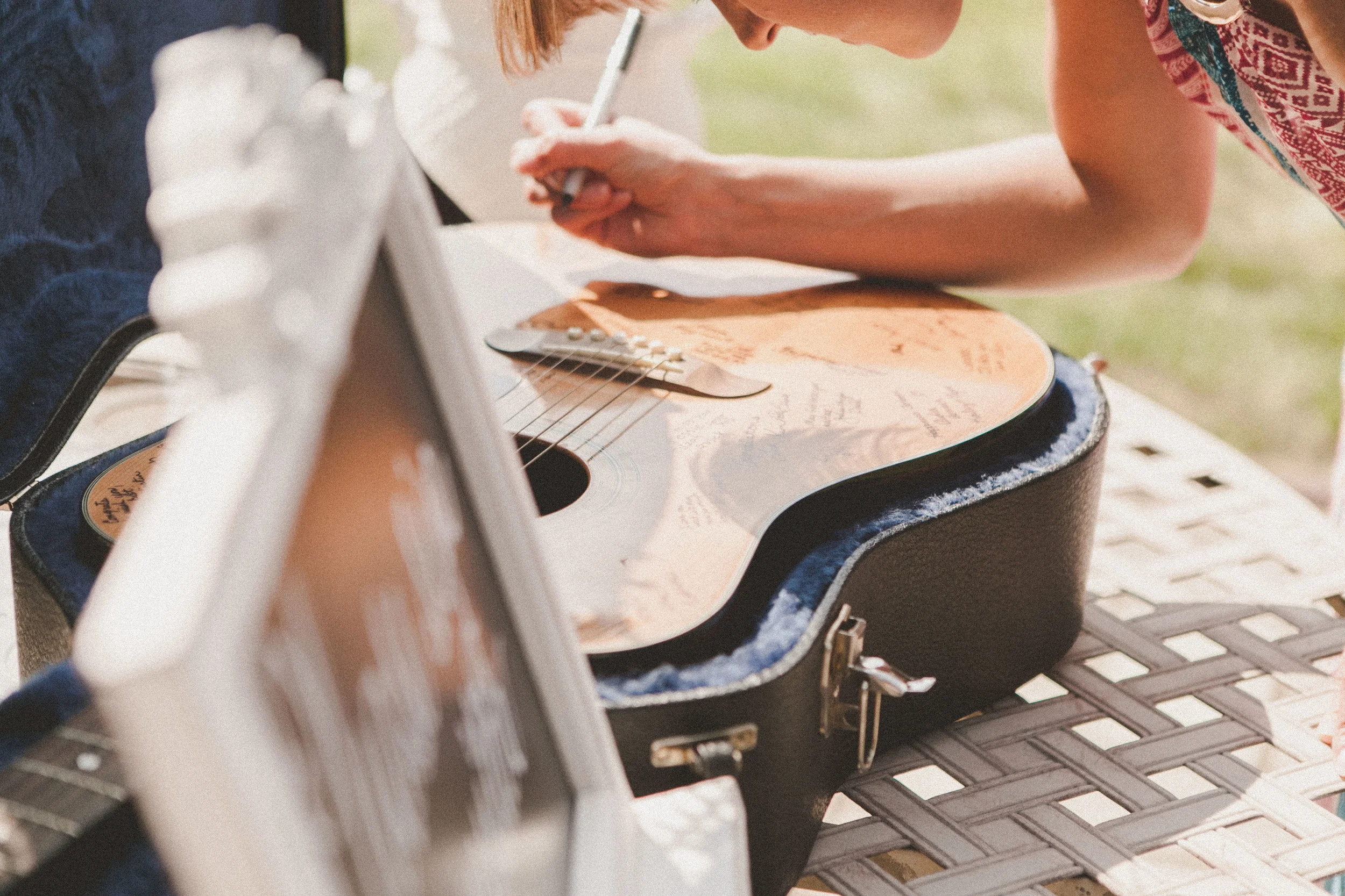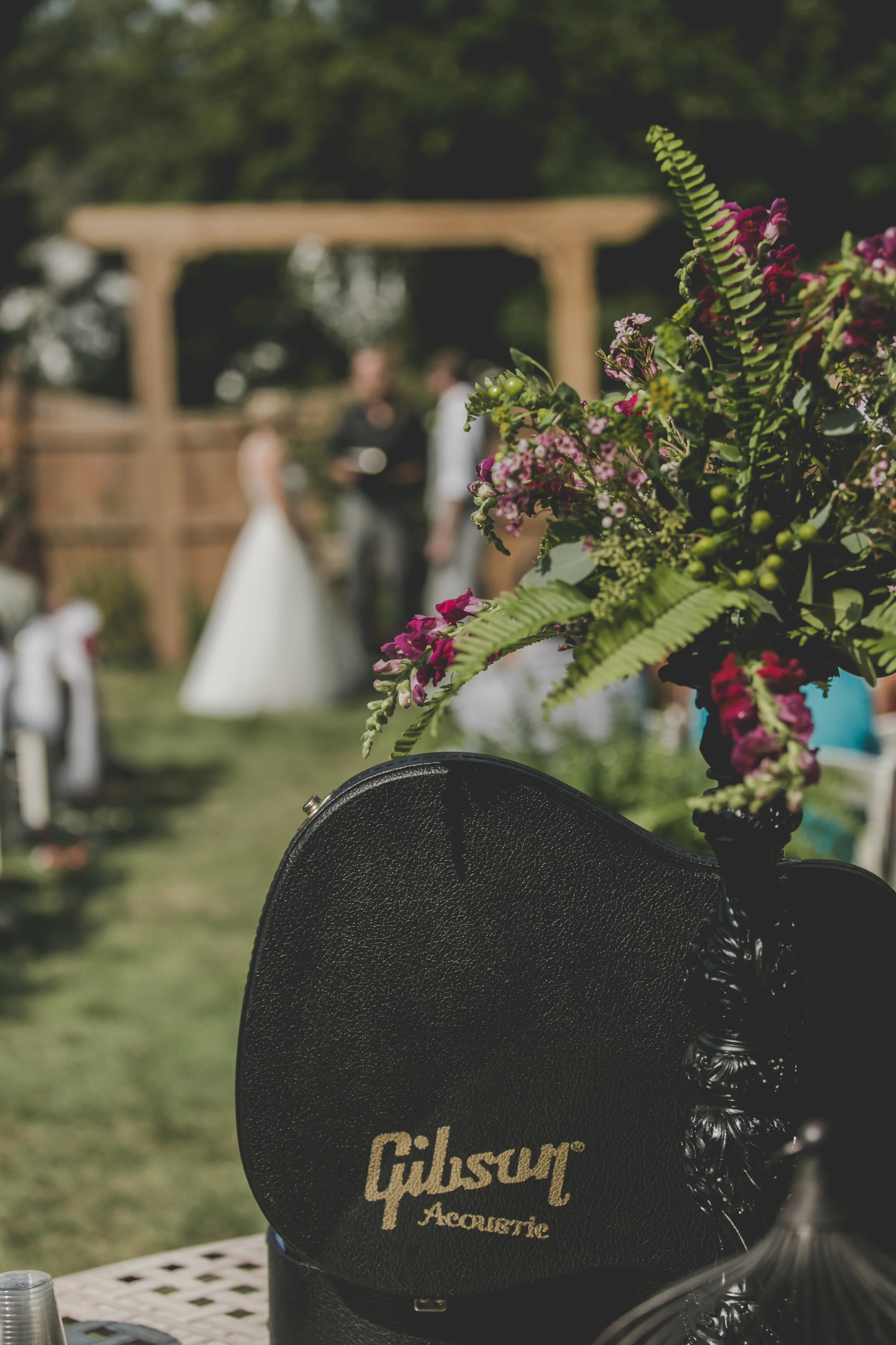 From a gorgeous cascade bridal bouquet with fern accents to classic black bridesmaid dresses to a guitar guestbook set the stage for a classic wedding with a dash of quirky personality. To make it a true personal memory, Andrew wrote a song just for his bride and performed it during the ceremony, while Jessica’s dad and brother, who both serve as everyday pastors, also had a part in helping them say their vows.