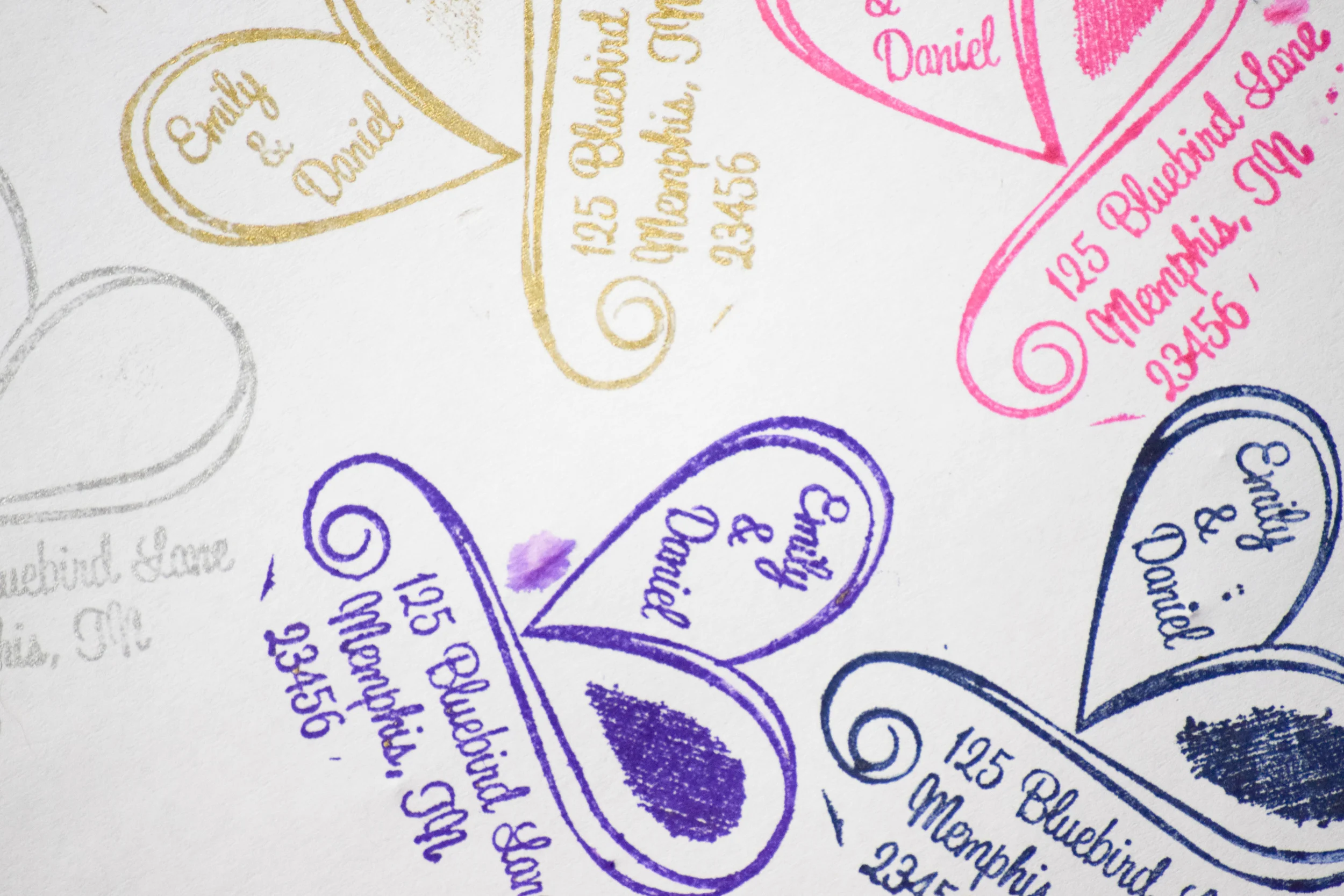 The majority of us don't know how to calligraphy and even if we did, it would take up hours on end to write the return address on every single envelope. So we found the perfect alternative from Purple Lemon Designs that will not only save you time and money, but adds the perfect beautiful touch to your invites and save the dates! Check out some of our favorite wedding address stamps that you can customize just as you wish! And you'll thank me, I promise :)