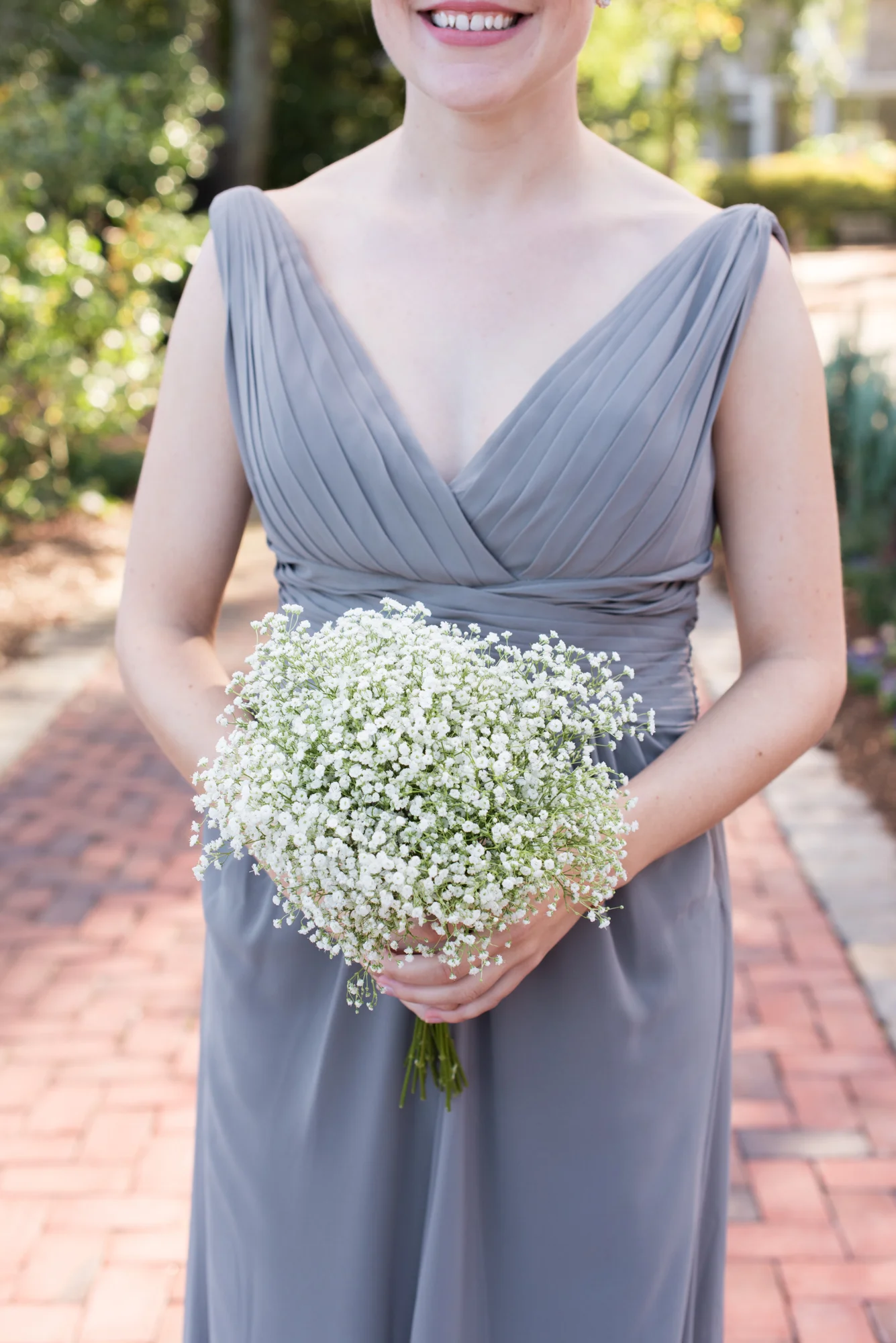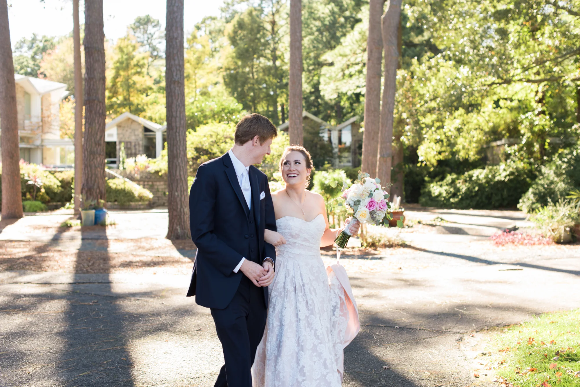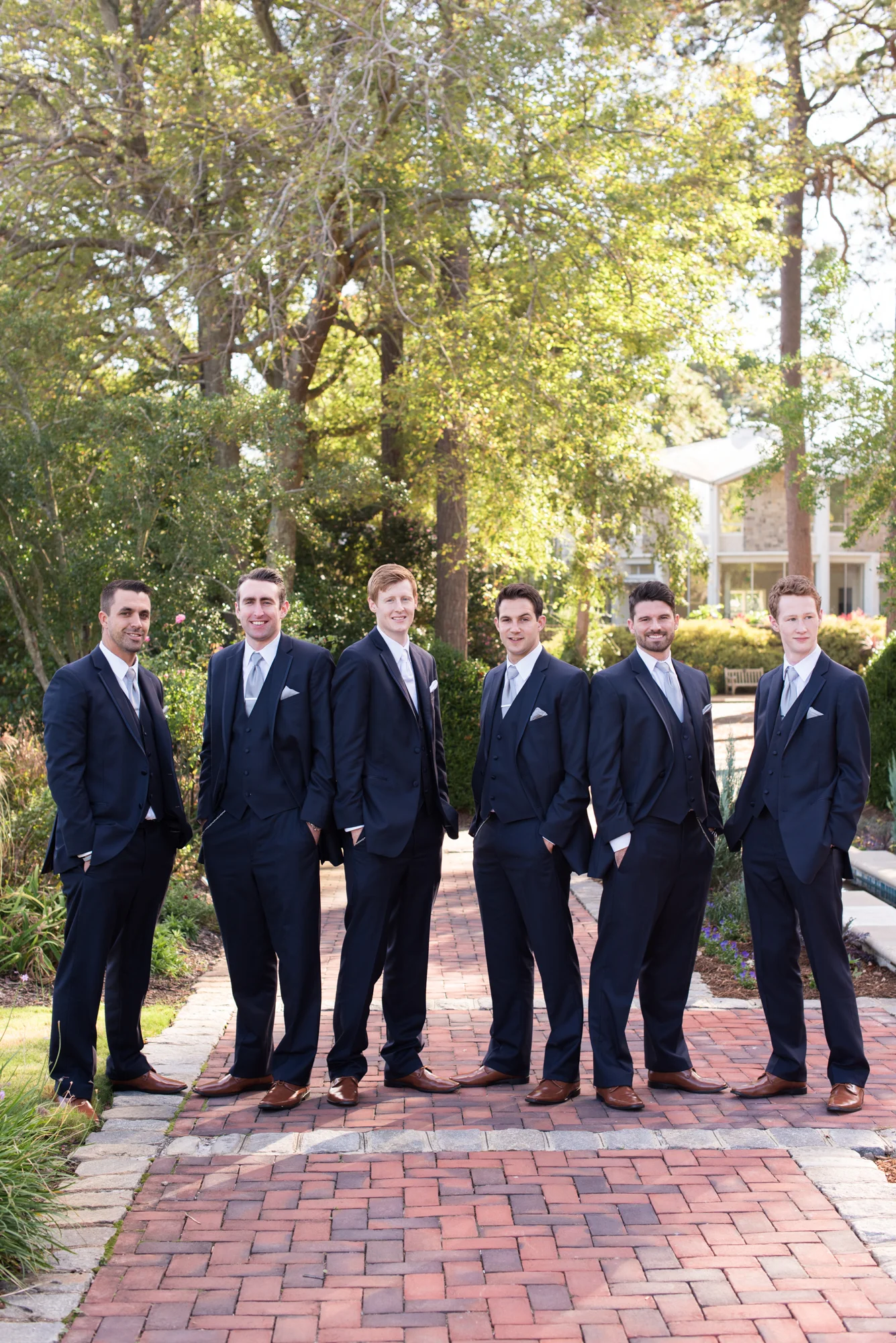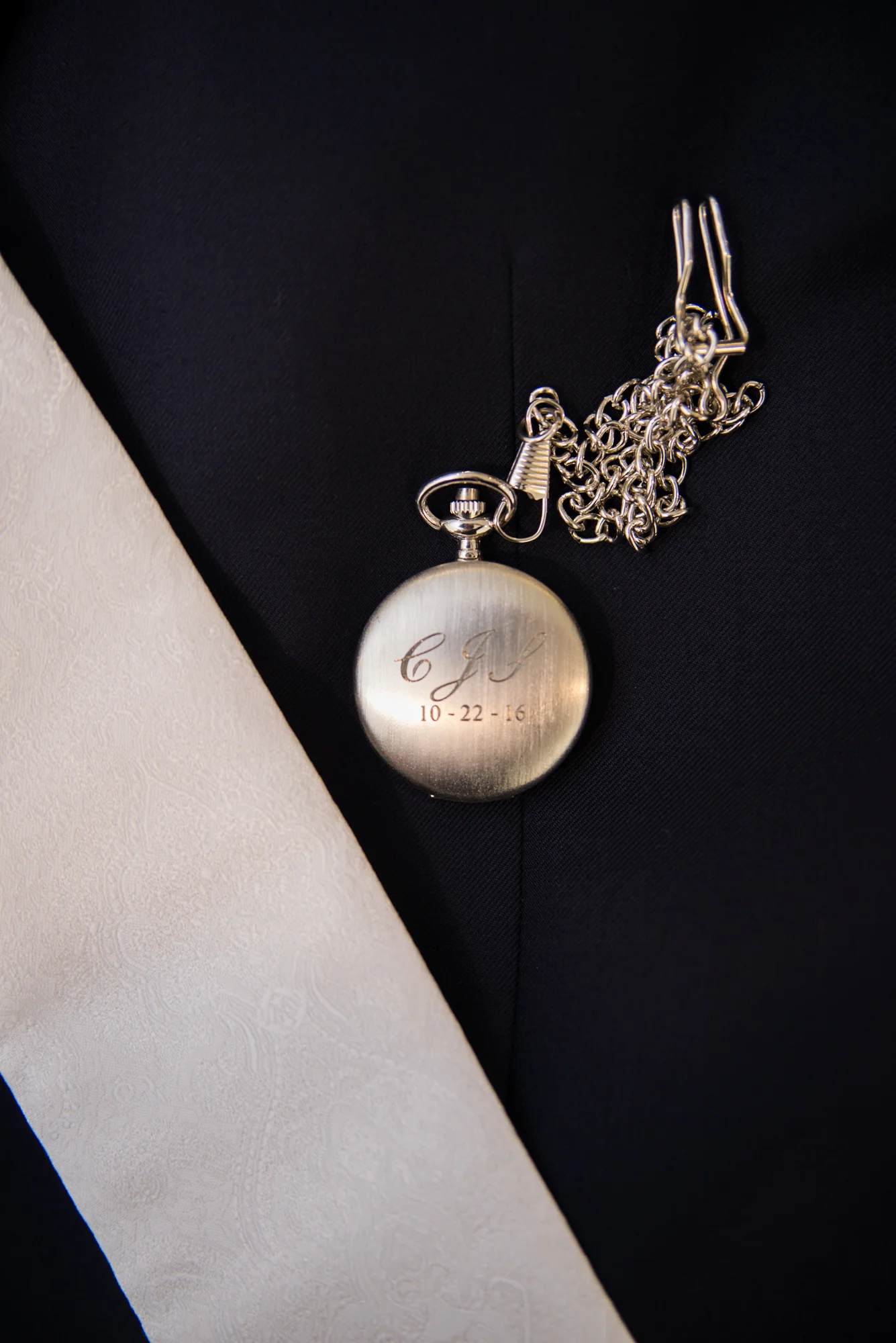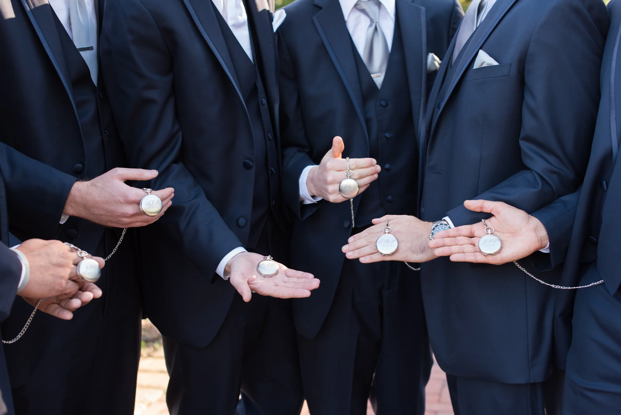 Kelley and Chris shared a sweet first look together before taking portraits. Kelley had to show off the pockets of her wedding gown and they both took a few moments to catch each other up on what they had been up to since they last saw each other the night before. Later, they shared vows in front of their family and friends in an outdoor garden space. Kelley wore her mother’s pearl necklace and Chris completed his wedding day look with an engraved pocket watch and tie clip, also a gift to each of his groomsmen.