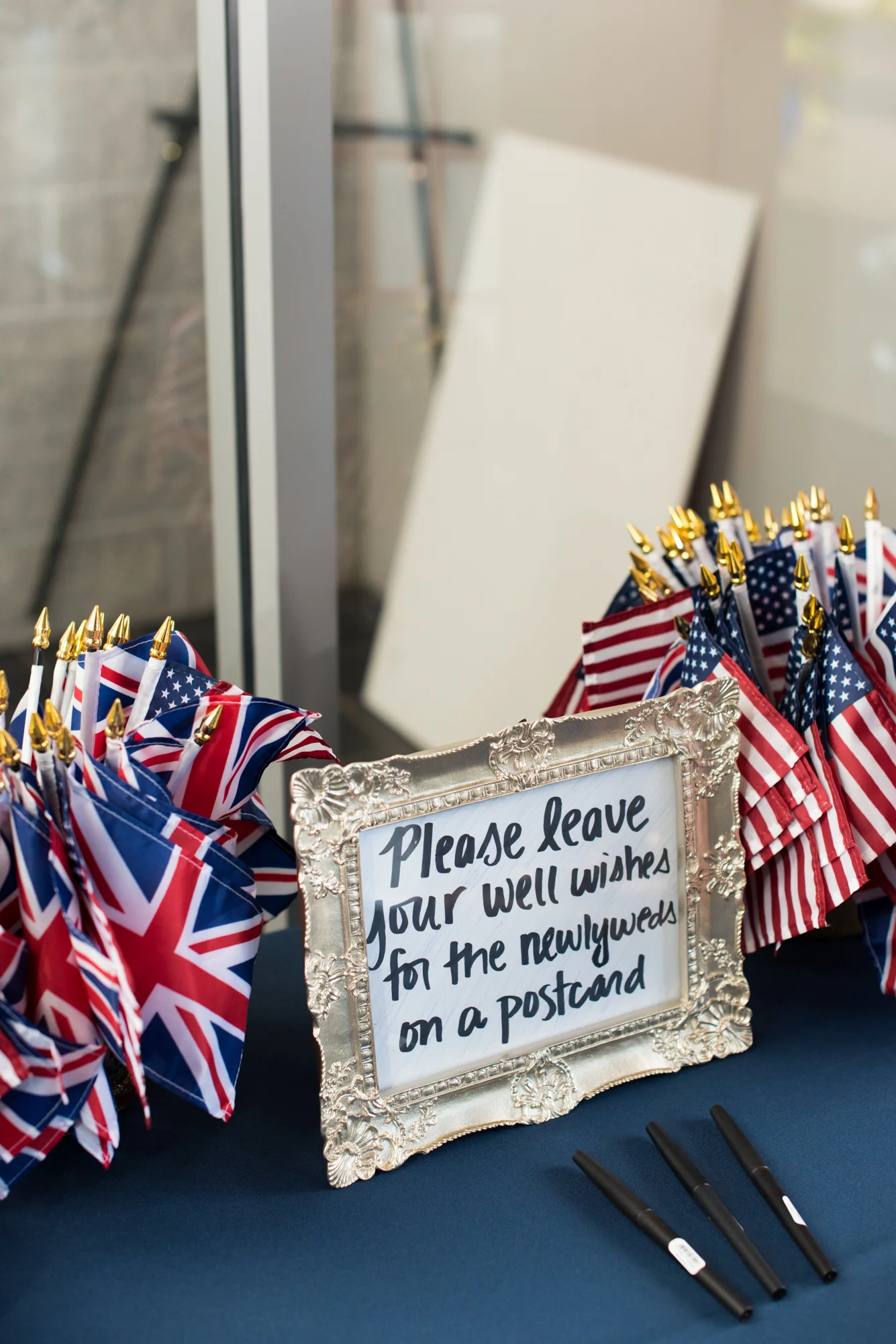 The couple’s long distance relationship was evident in their wedding day details as well. Guests enjoyed their signature drinks - The Englishman and The American Girl - and picked up British and American flags to wave on the dance floor.