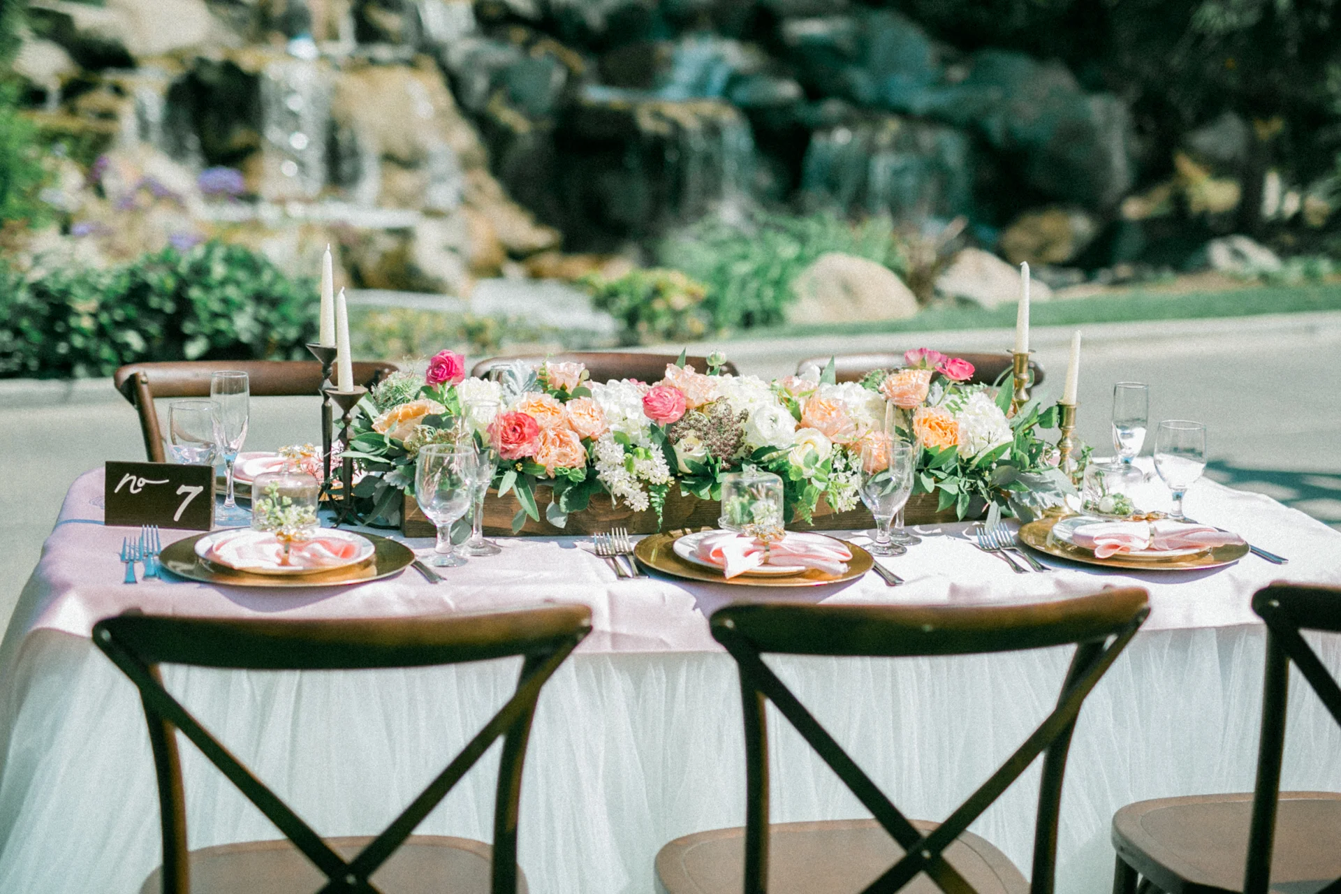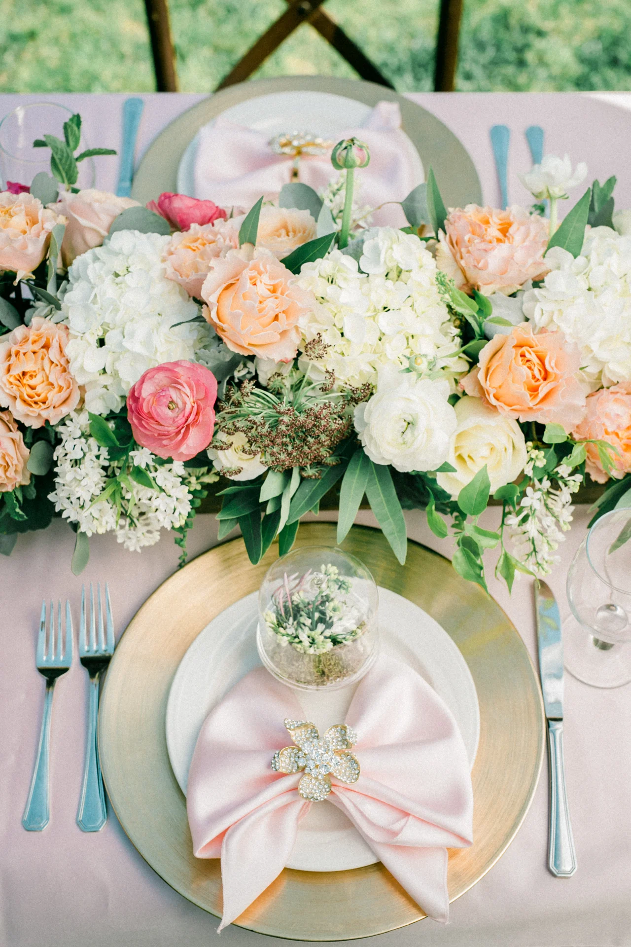 Everyone loves Spring and Summer right?! What better way to celebrate your love than an outdoor wedding in the midst of a gorgeous waterfall, soothing lake and an abundance of trees. We chose a blush, gold, chocolate brown and white palette because the colors go so well in an outdoor setting and bring out the multiple green tones in the background.