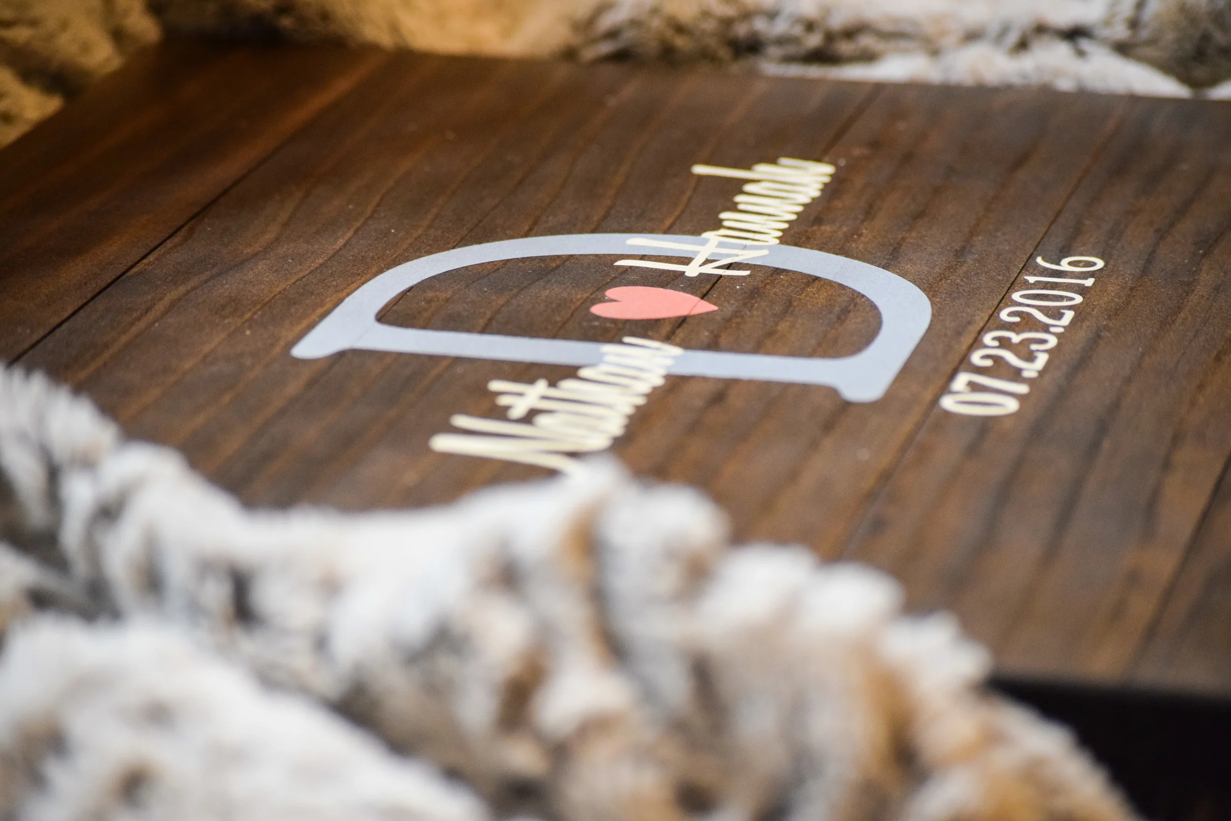 This wooden monogram guest book alternative not only acts as a guest book and additional rustic wedding decor, but can be displayed in your new home together after the wedding as a keepsake of your special day and all of those who celebrated with you. Can't get much better than that!