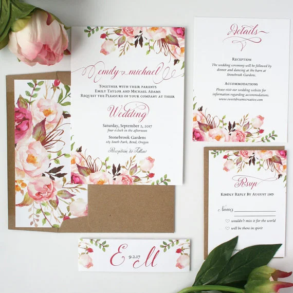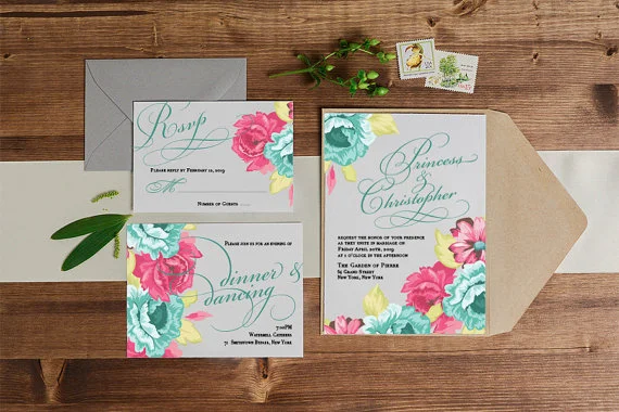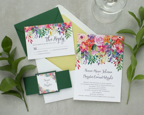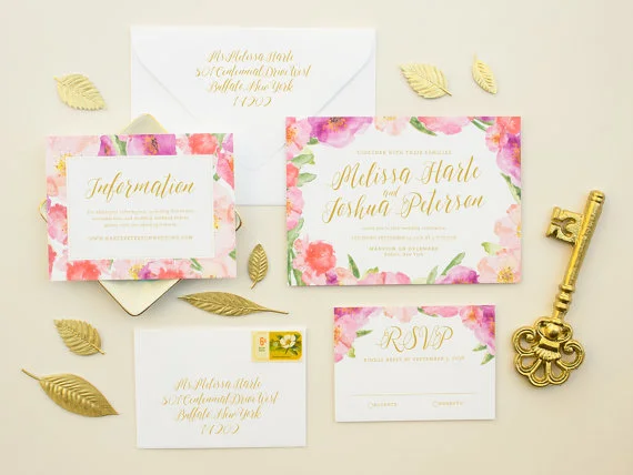 Florals, whites, greenery and brights -- everything I think of when I think about Spring weddings. So for those of you are as in love with Spring as I am, here are some gorgeous Spring wedding invitations that are absolutely going to make you swoon!