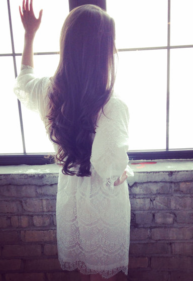 A white, lace bridal getting ready robe that can be used the morning of the wedding, on your honeymoon and beyond, it's beauty perfection. You can't disagree with that!