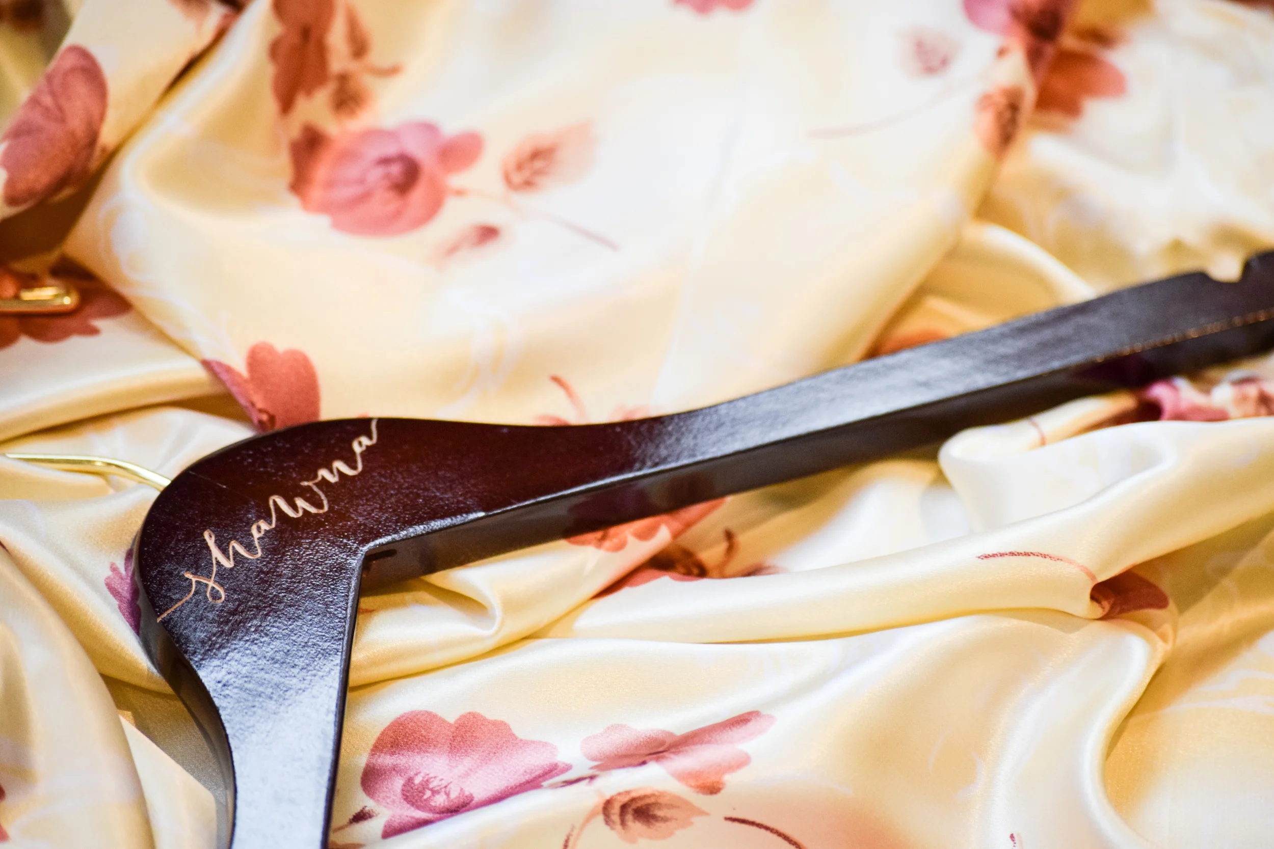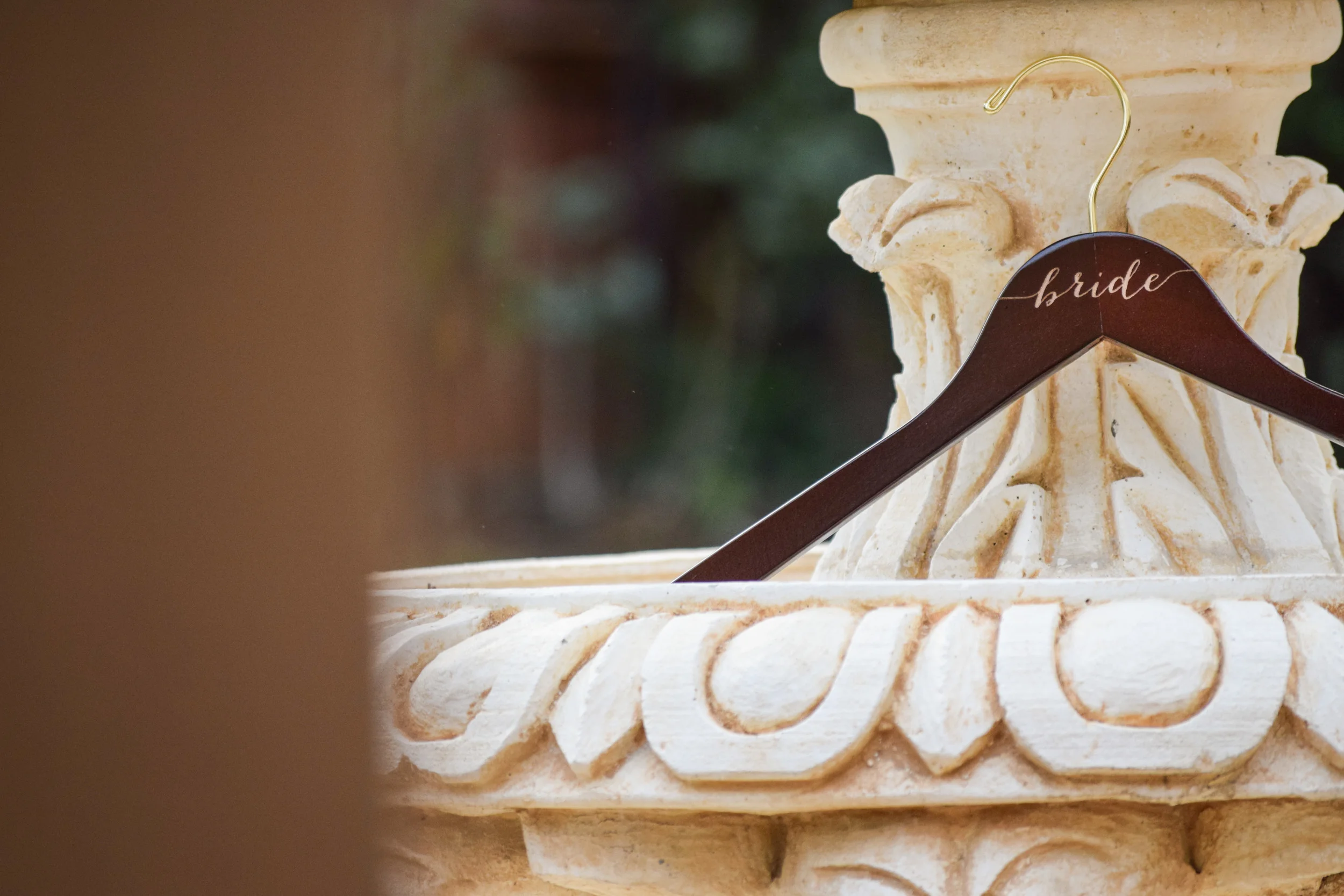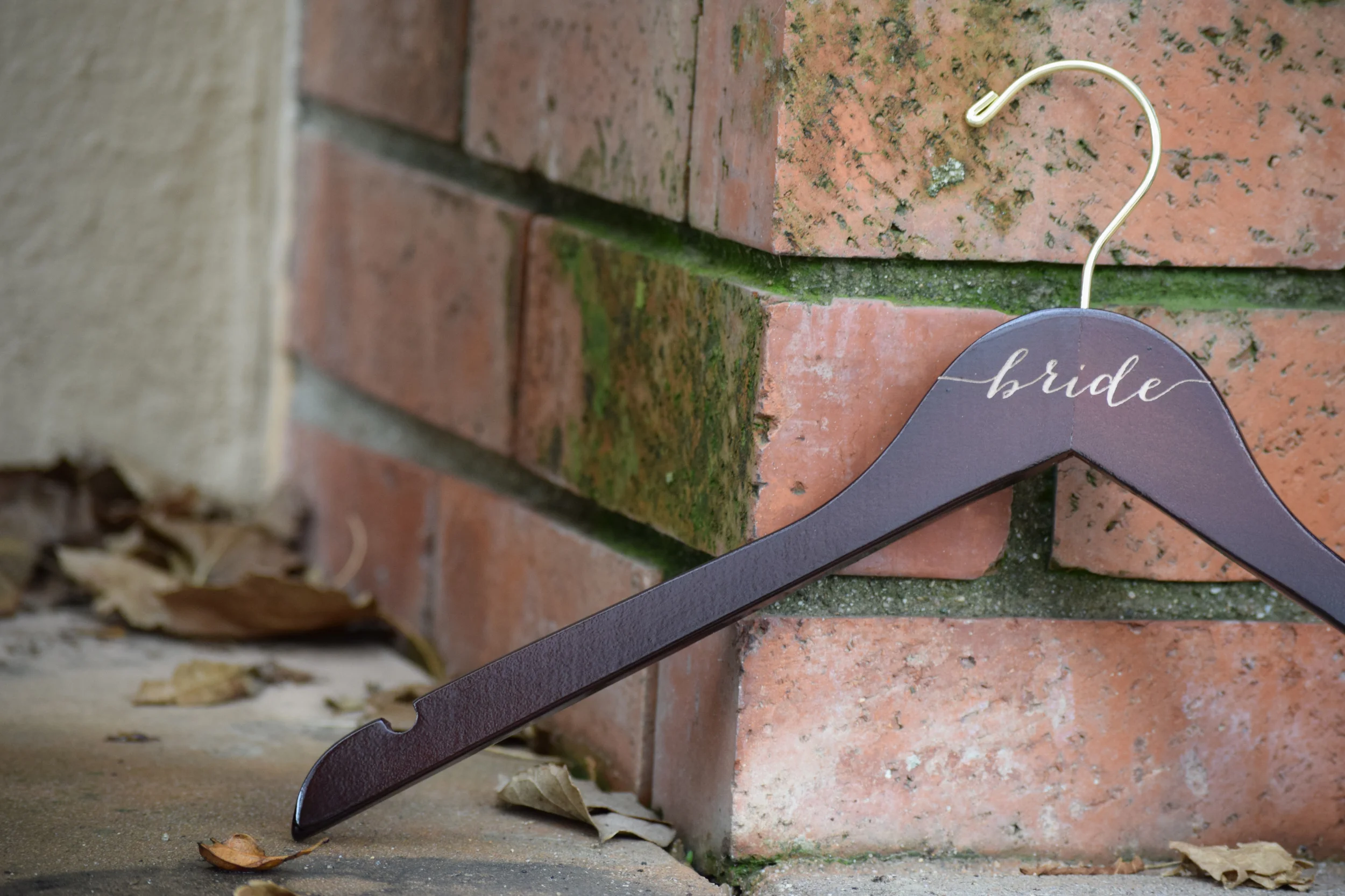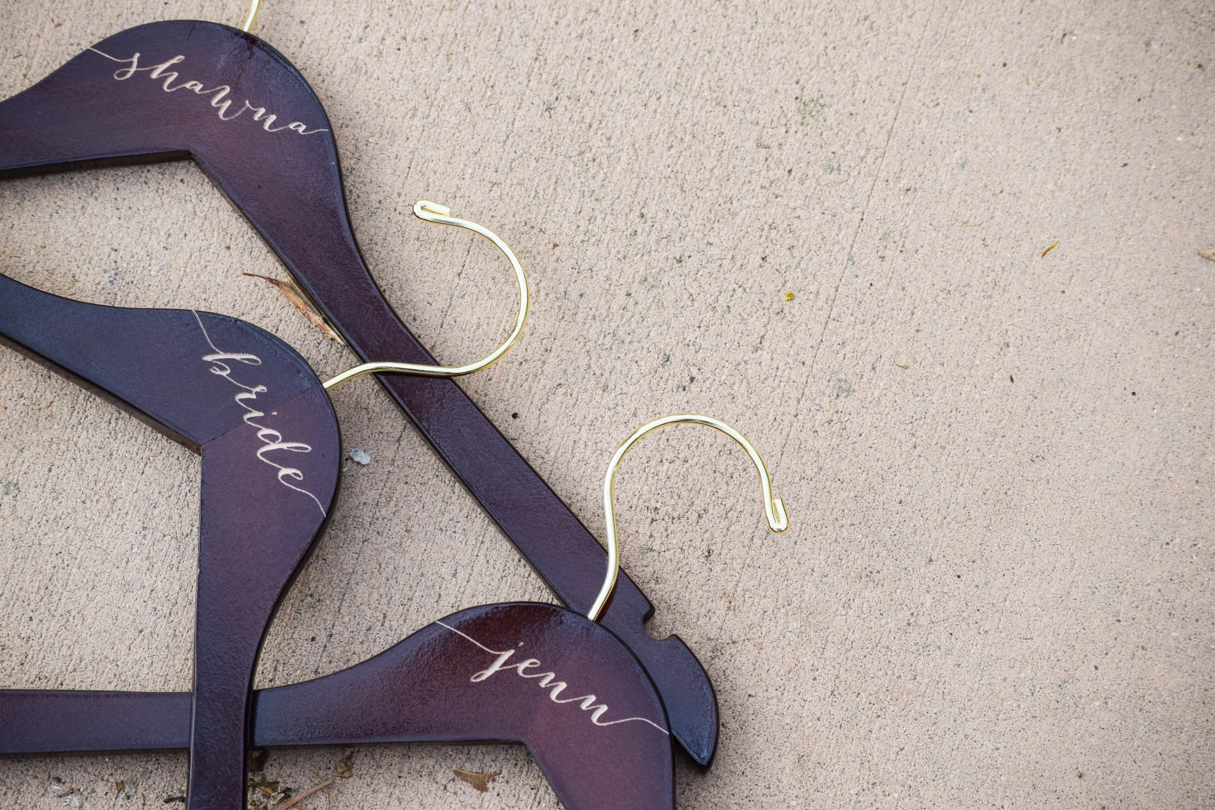 Lucky Maiden makes the most gorgeous bridal hangers -- they've got wooden engraved bridesmaid hangers, custom wire bride and bridesmaid hangers, engraved monogram wooden wedding day hangers and just some of the most gorgeous fonts and details.