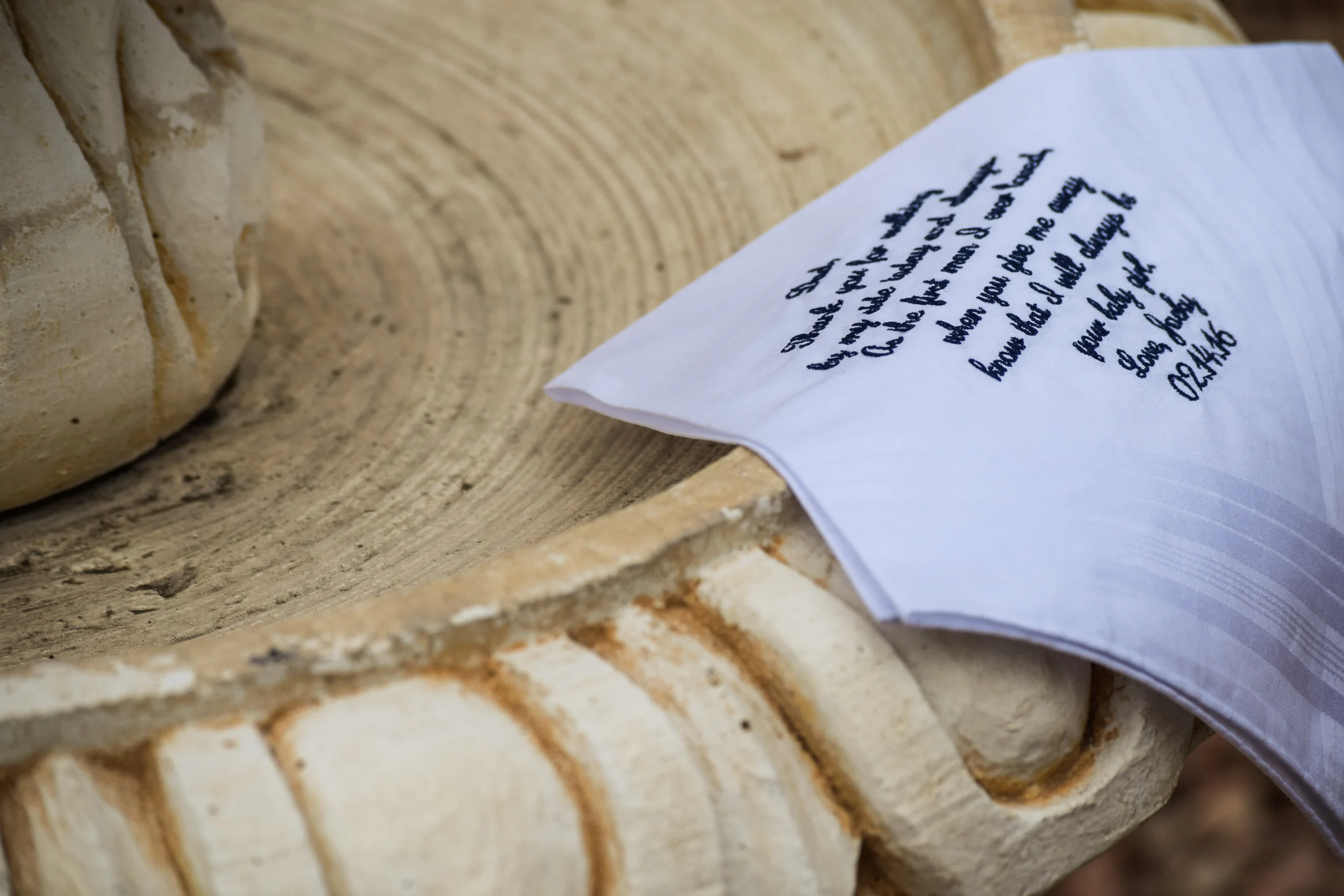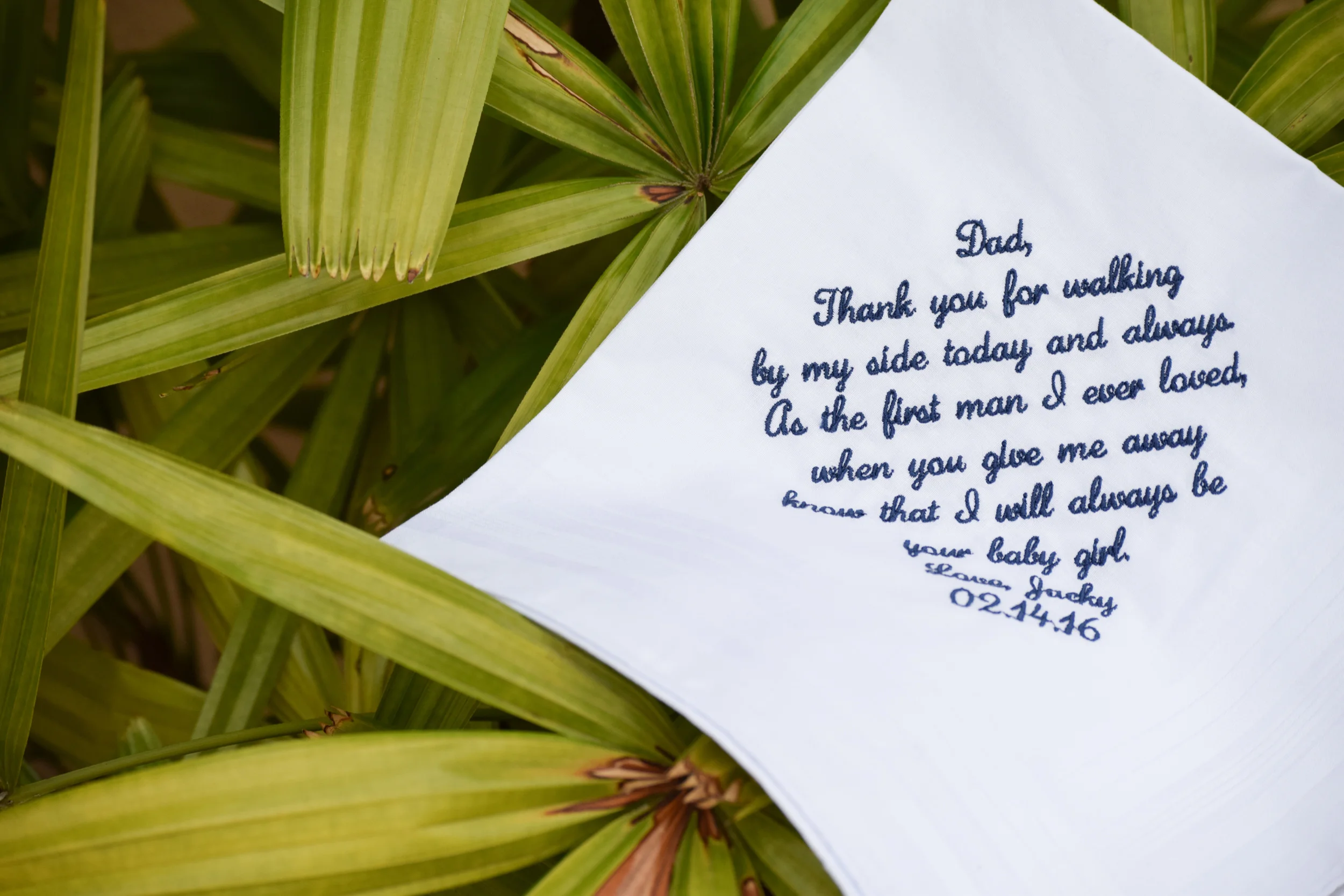 No matter what you choose to write and who you choose to give it to, speak from the heart and you're sure to make that special someone smile. Customize your wedding handkerchiefs from Inspired Stitches at the link below and scroll down to see a gorgeous example.