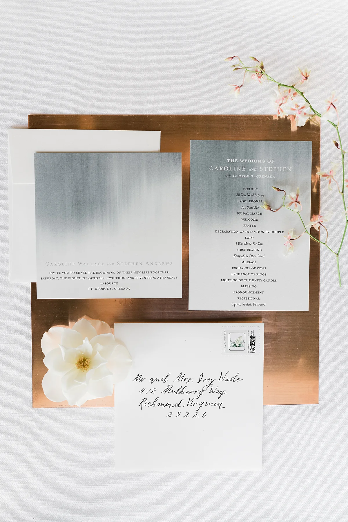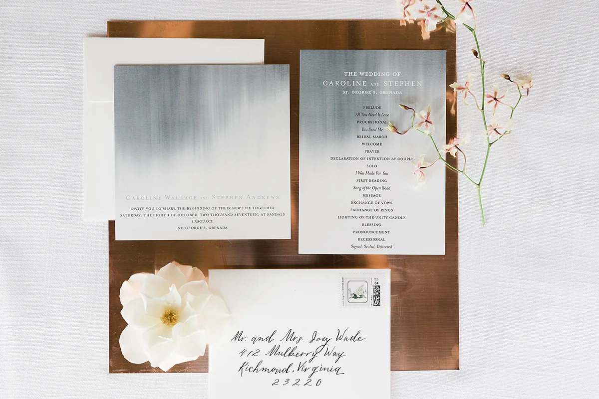 Wedding invitations and save-the-dates are one of my favorite parts of the wedding planning process. Receiving one in the mail and opening it for the first time always puts a smile on my face — they’re a true symbol of love and a reminder of that love and commitment which will be shared on your wedding day, through the entire process.