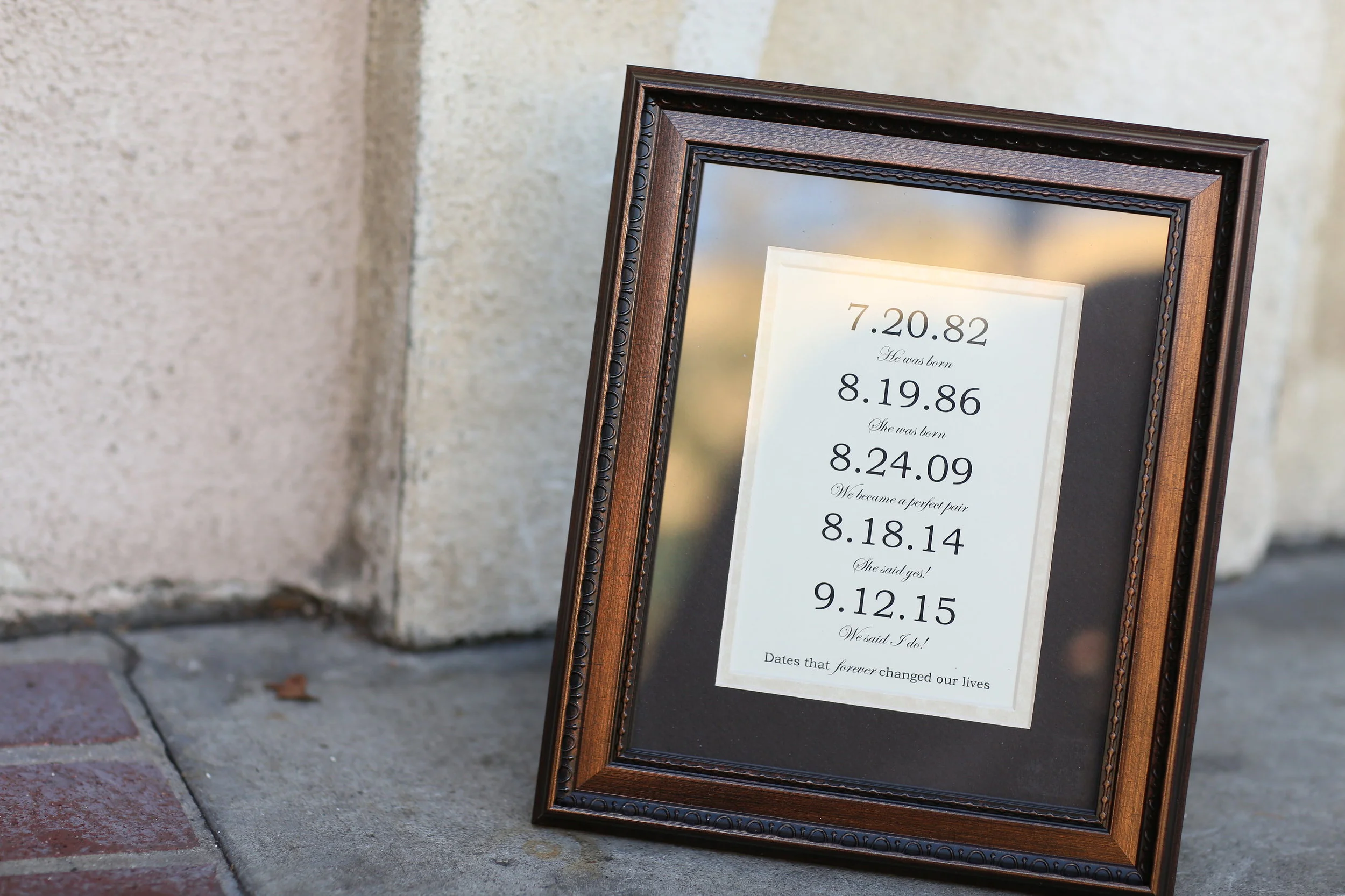 Looking for the perfect bridal shower or engagement gift? This framed custom date art from Mrs. Why Knot is the perfect decor piece for the wedding day, and makes a beautiful keepsake to hang in you first home together :) All of those important dates are truly treasured as part of your story, so why not make them part of your home!