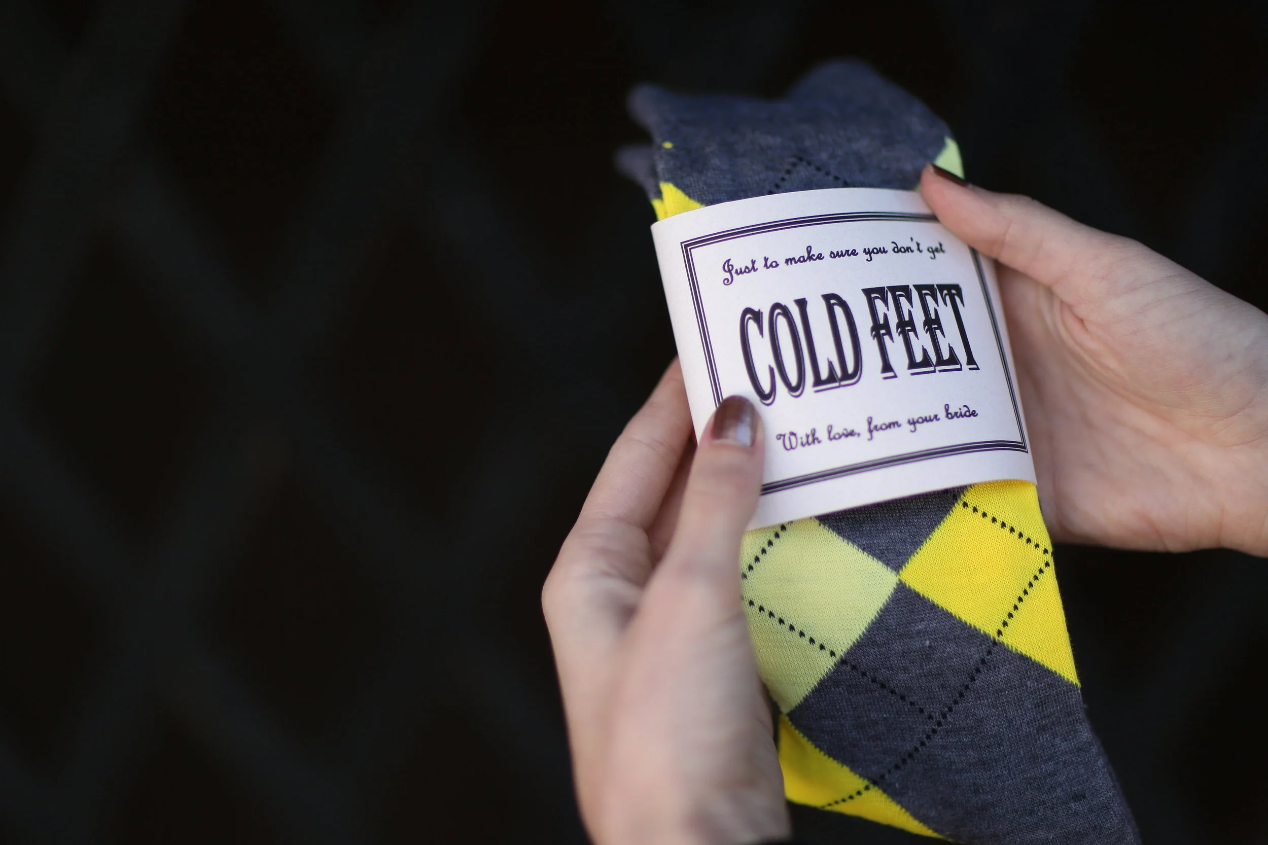 There's one thing a bride has to be nervous about, and that is her groom getting cold feet! Just kidding! We all know that's not really going to happen, but it sure does make an adorable give for him to use on the wedding day! Gift them on their own or make a "groom survival" kit to surprise him the morning of your big day! Head on over to Aisle Always Love to customize your own!
