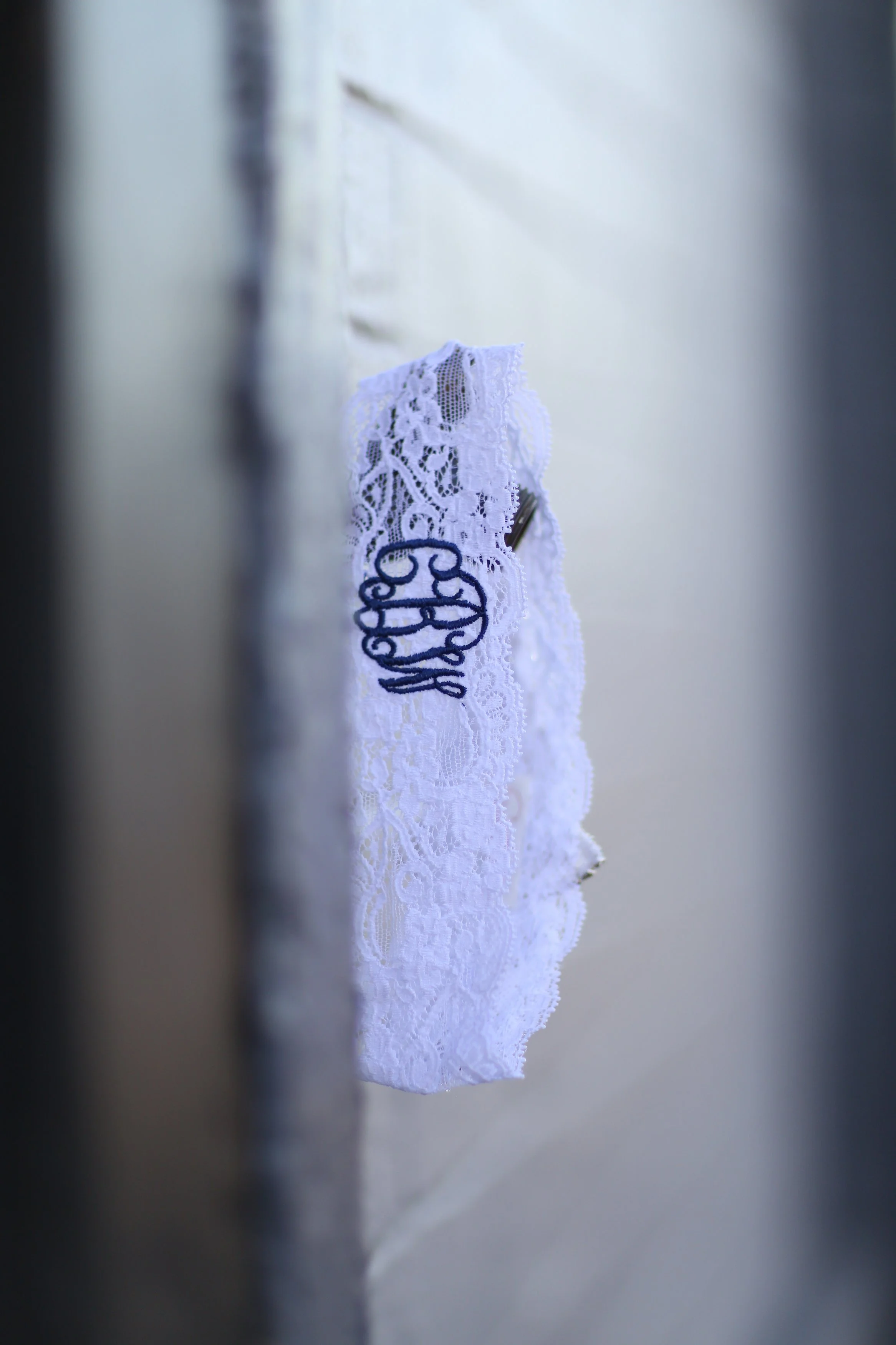 Something new, something blue, and something beautiful, this lace garter by Southern Ever After is to die for! Blue stitching (or any other color you wish), your new monogrammed initials, and some stunning lace and jewels to top it off is all that is needed and more to make a beautiful accent to those pre-wedding shots!