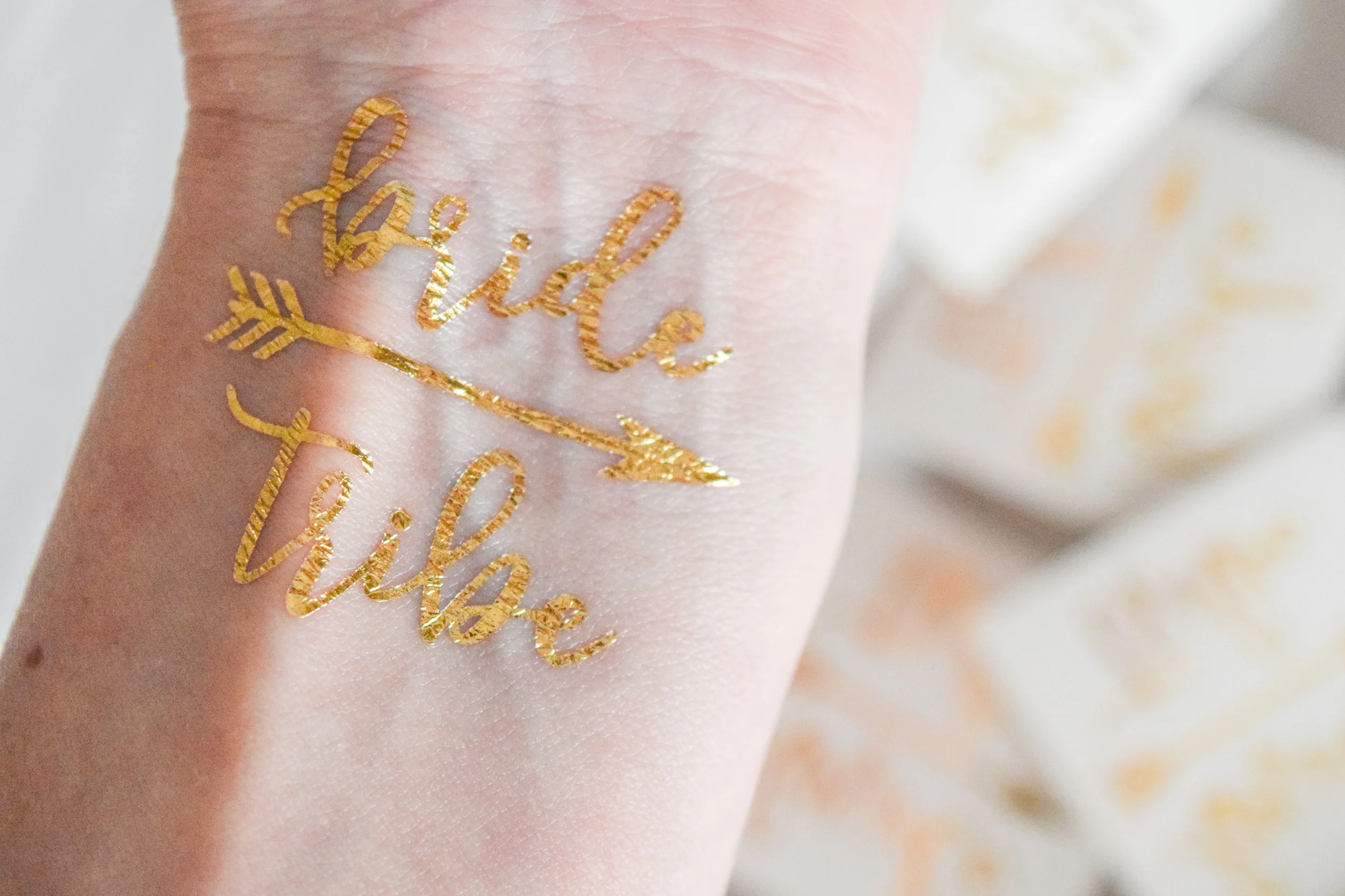 Personally, I think that every bridal party needs these gold bridal party tattoos from Black Label Decor for the bachelorette party. Want to know why? They're the perfect little addition to make the celebrations more fun. And of course, they make for some pretty adorable photo opps too :)