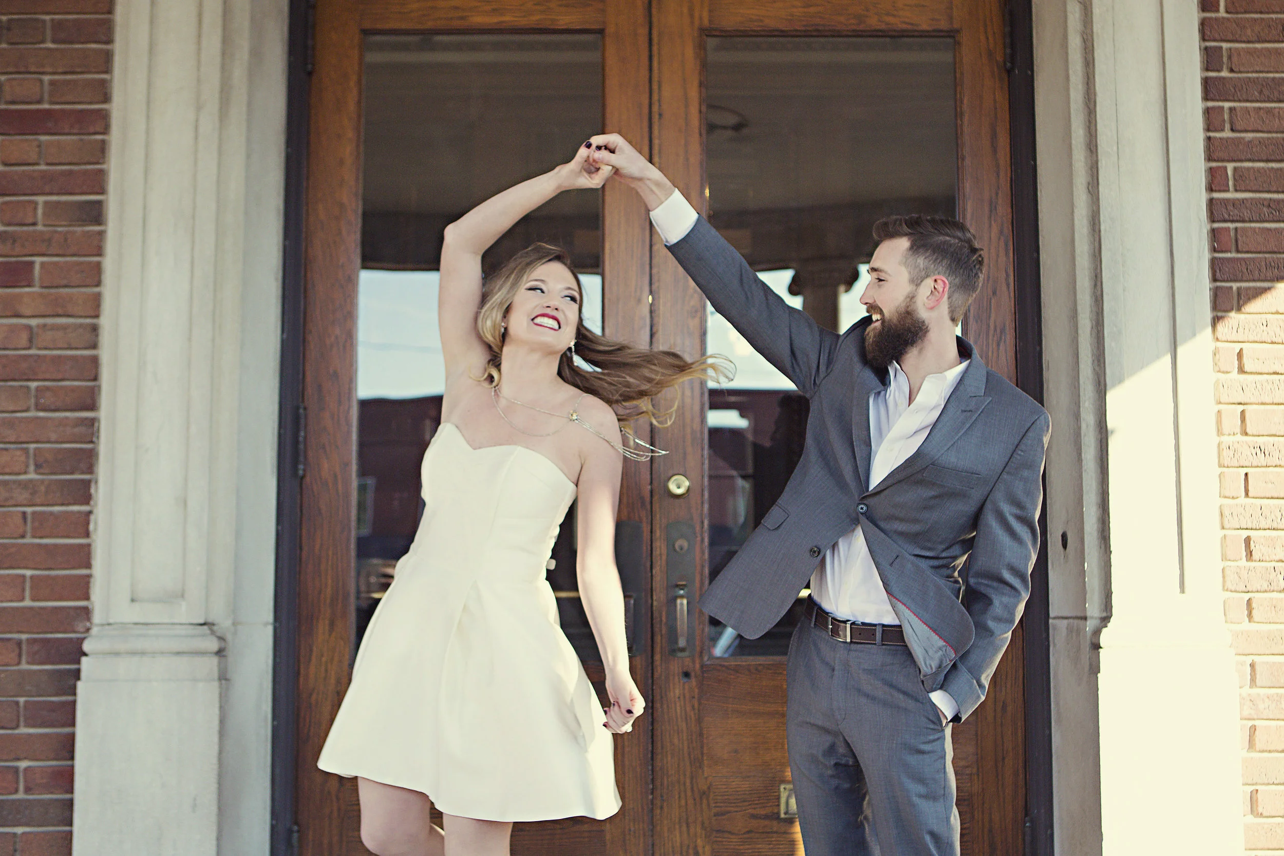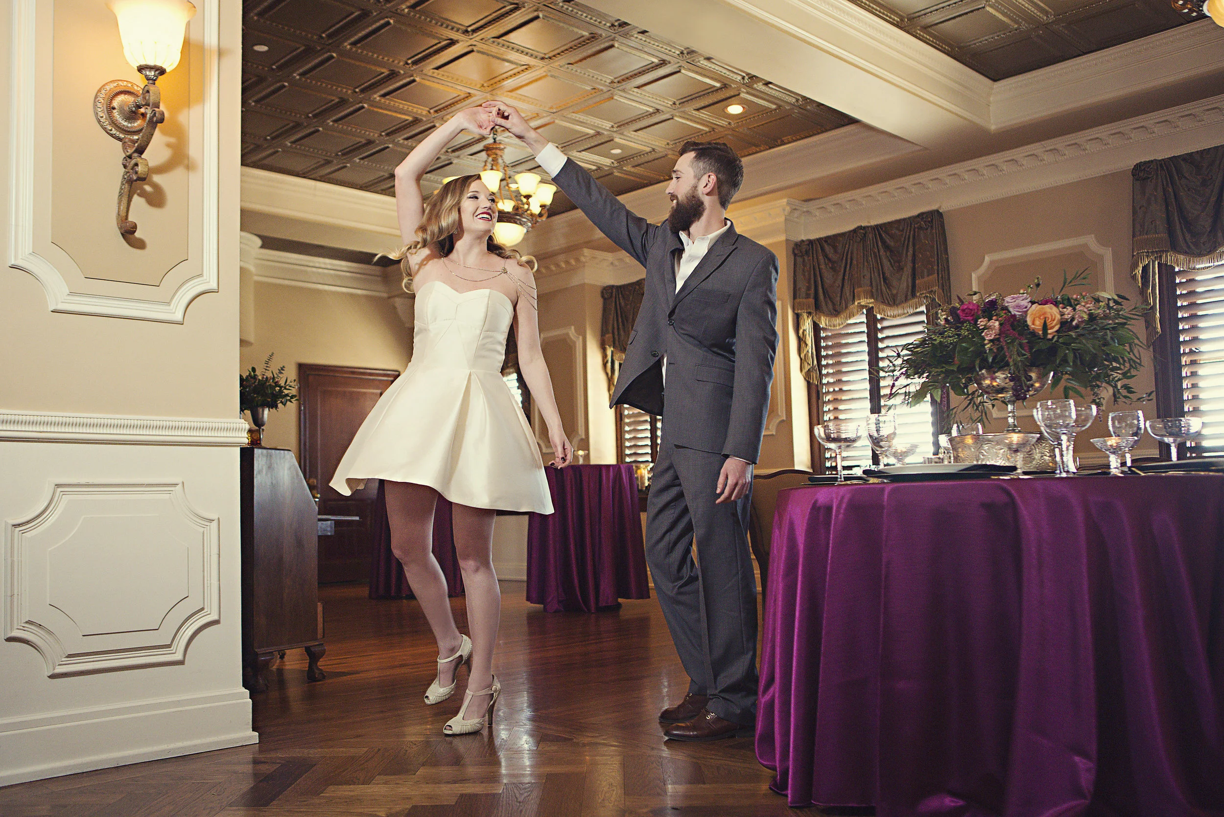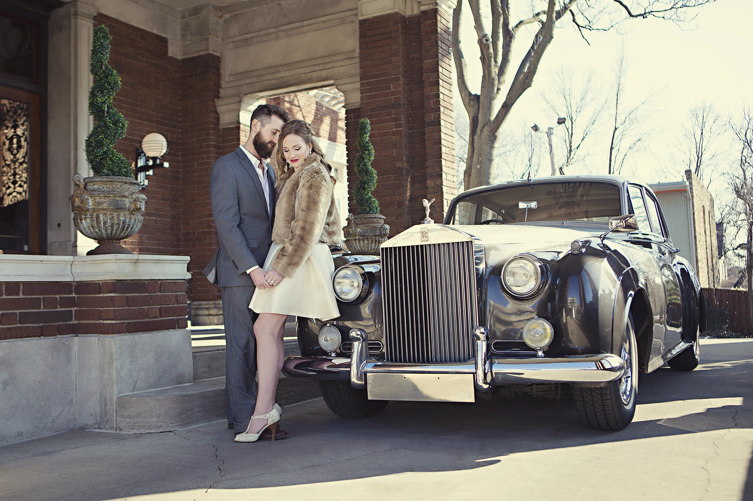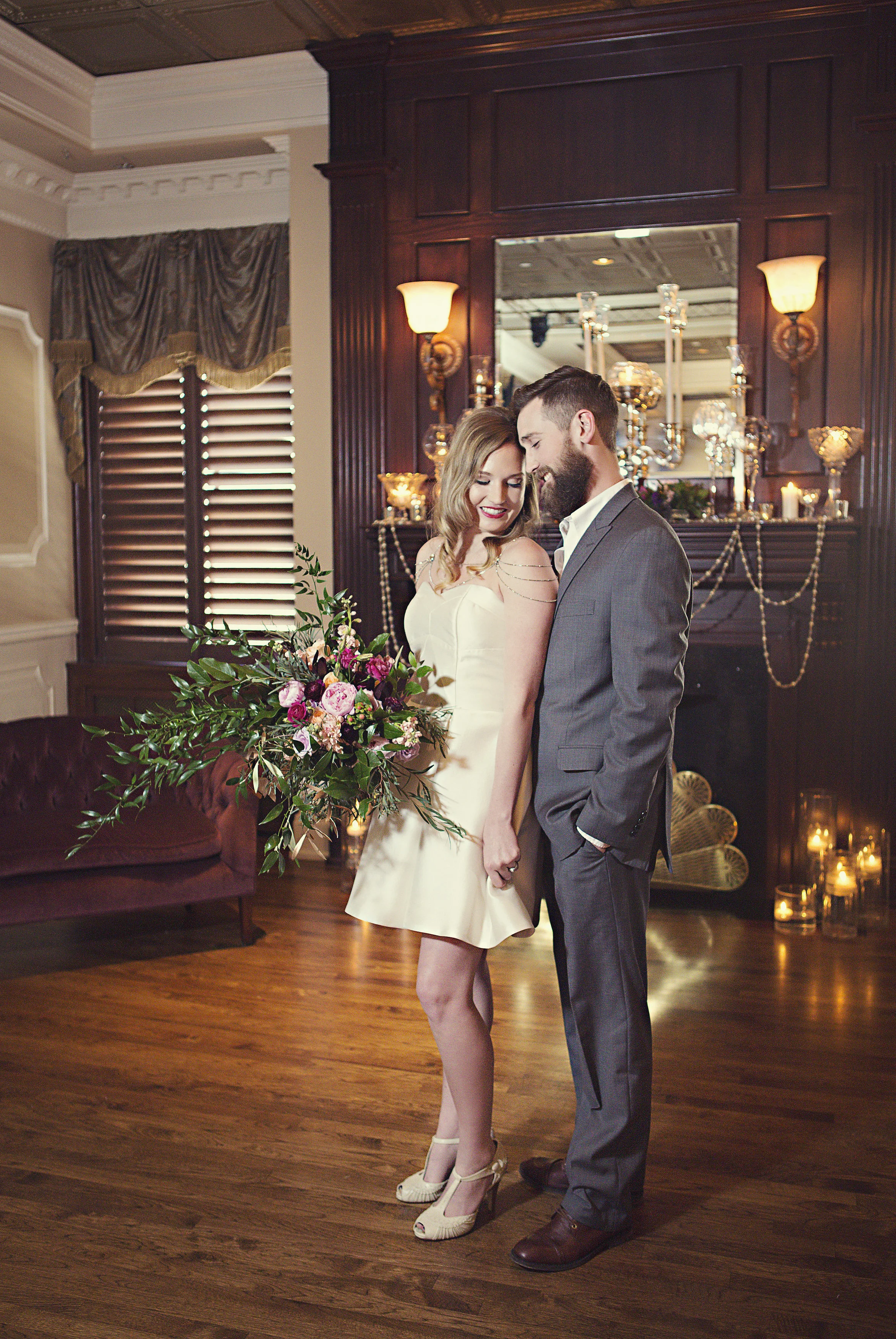 The timeless beauty of Loose Mansion is the perfect setting inside and out for those with a deep appreciation for Kansas City’s history and well-designed events. This shoot should inspire couples to enjoy their last eve before the big vow exchange in a way that showcases them as individuals, and celebrates their hometown and love for each other. Our gorgeous bride-to-be is styled in simple yet stunning cocktail dresses with trendy accessories from Altar Bridal that are sure to have any gal glowing. Our groom sets the mood throughout the evening with his dapper vibe whether wearing his perfectly tailored suit, or his favorite Charlie Hustle tee.