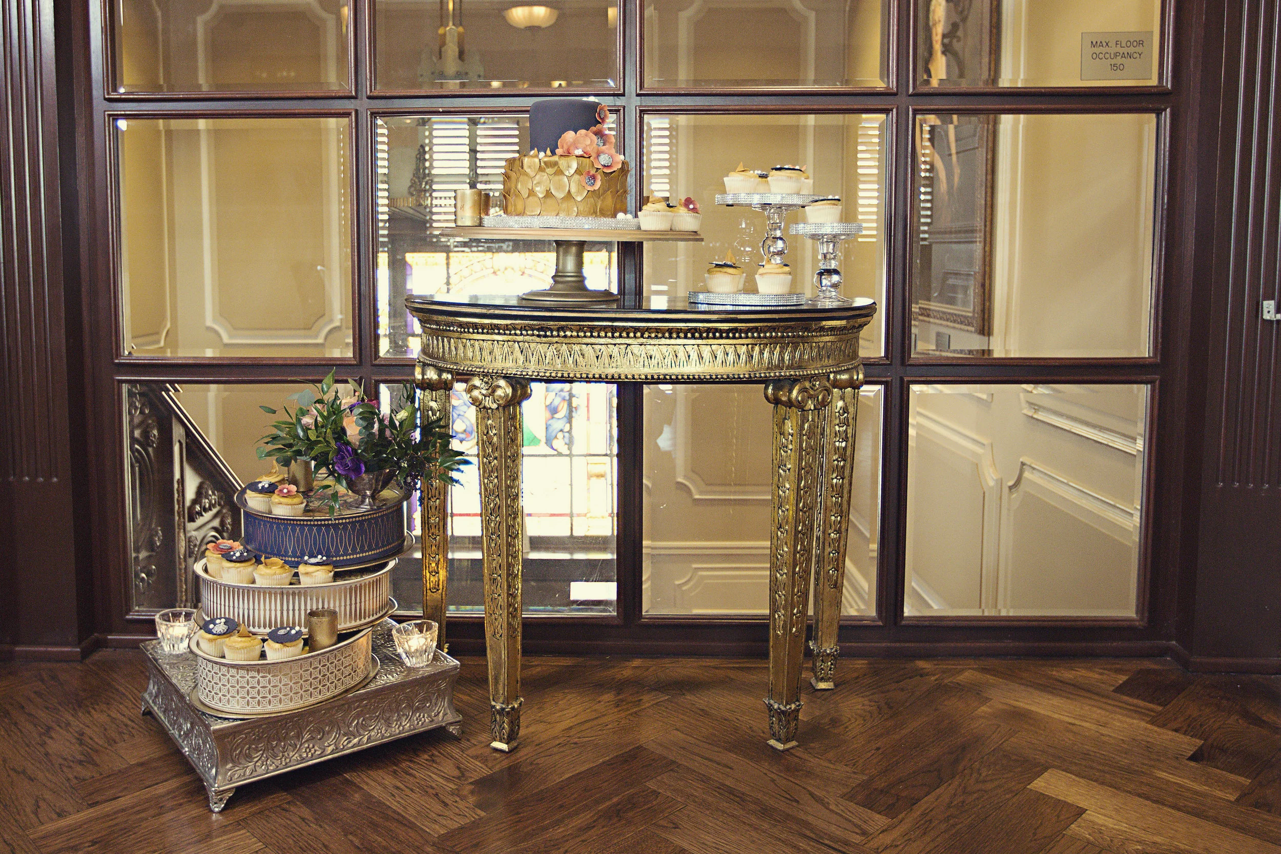 This beautifully styled shoot embodies the balance of including a couple’s favorite hometown mementos with an elegant editorial feel. We are obsessed over the masculine details, including the vintage Rolls Royce provided by Pech Limo, and our groom’s stylish leather boots. We are awe-struck with the romantic scene set by dripping pearls and soft floating candlelight, accompanied by details to grand for one day, including an over-sized bridal bouquet and a petite wedding cake and cupcakes.