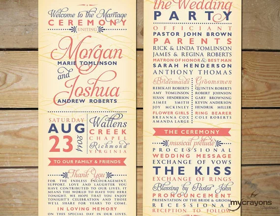 Take a peek at some of our favorite unique wedding ceremony program designs and if you see one (or two or three) that you love, just click the image and it will take you directly to where we found it!