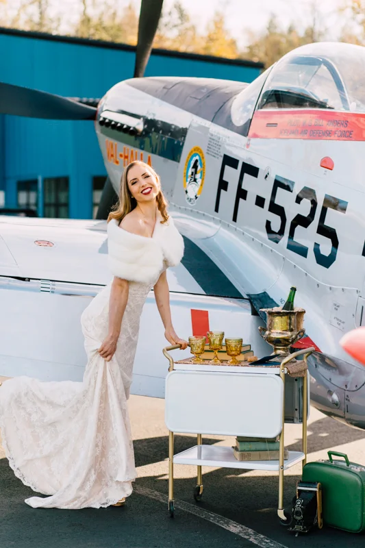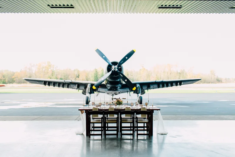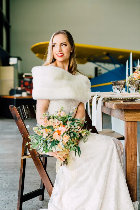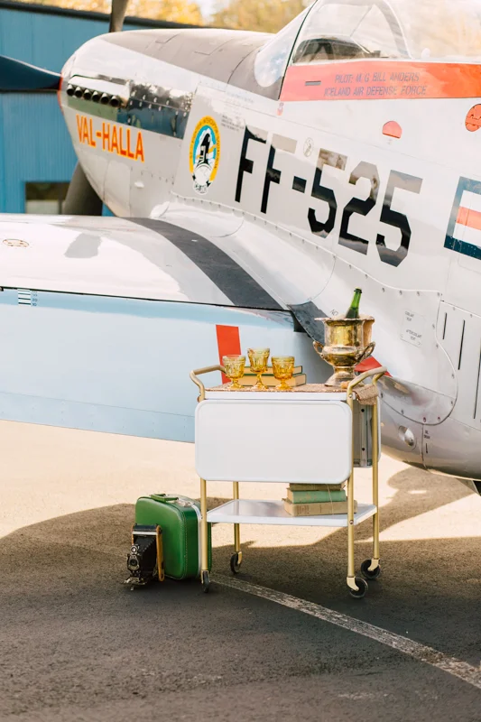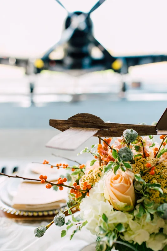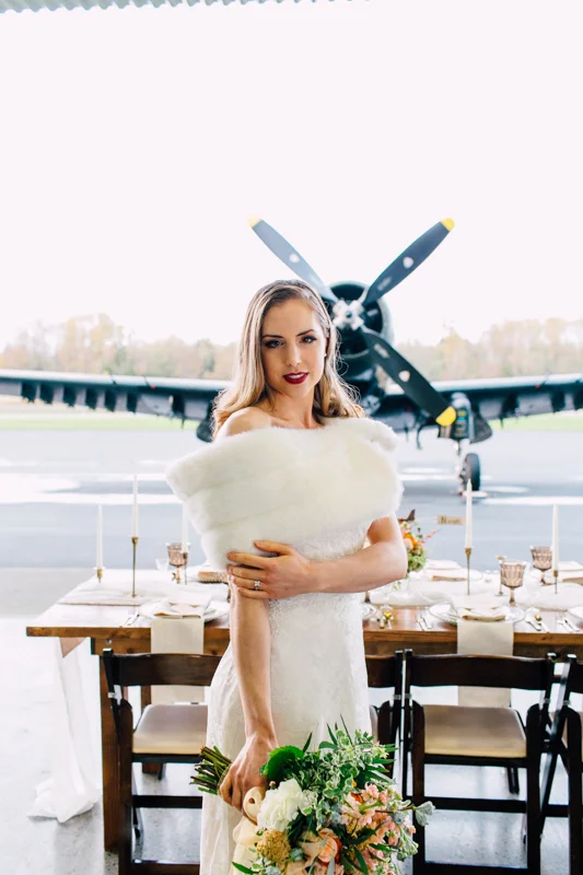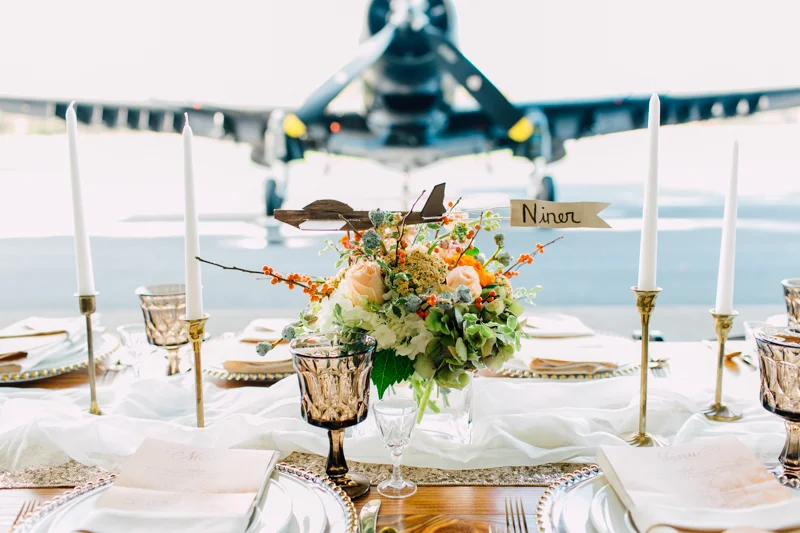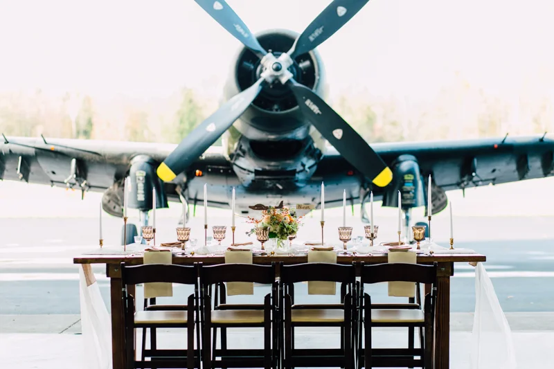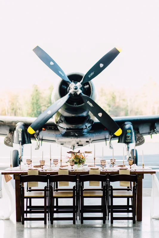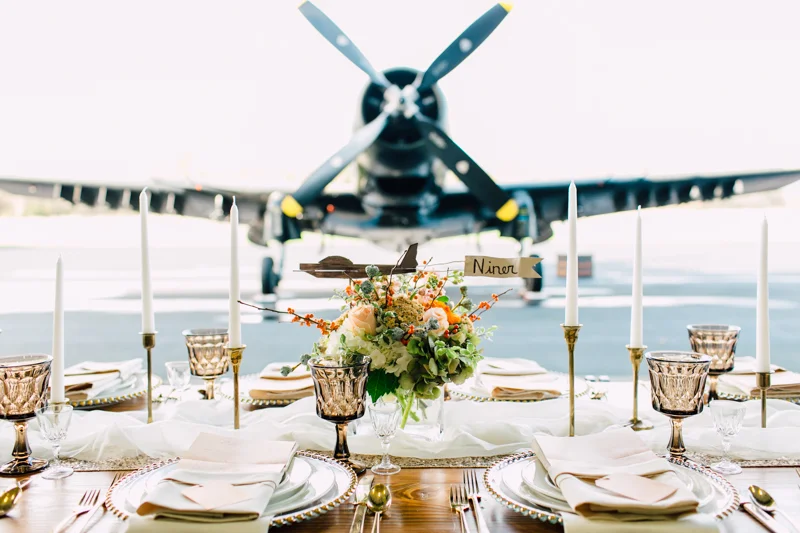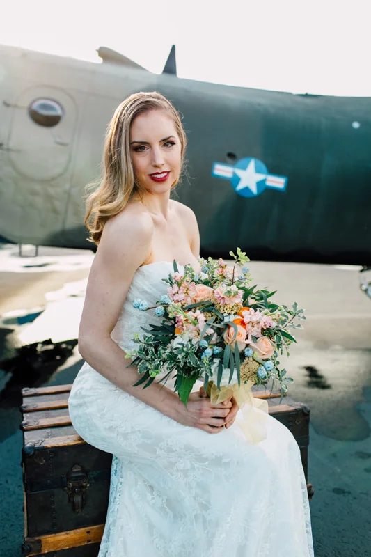 Whitley of Eastwood Events was immediately swept off her feet by the flight museum location when her father took her there to show the place off. His passion and love for planes was a huge part of the inspiration for this shoot and each little detail was an important part of making it come to life.