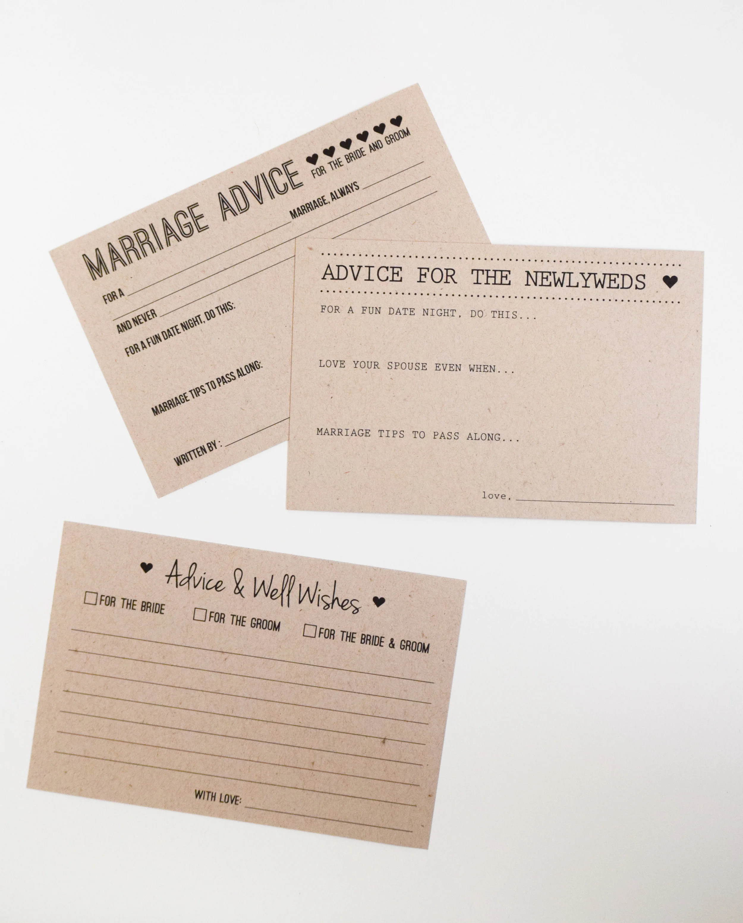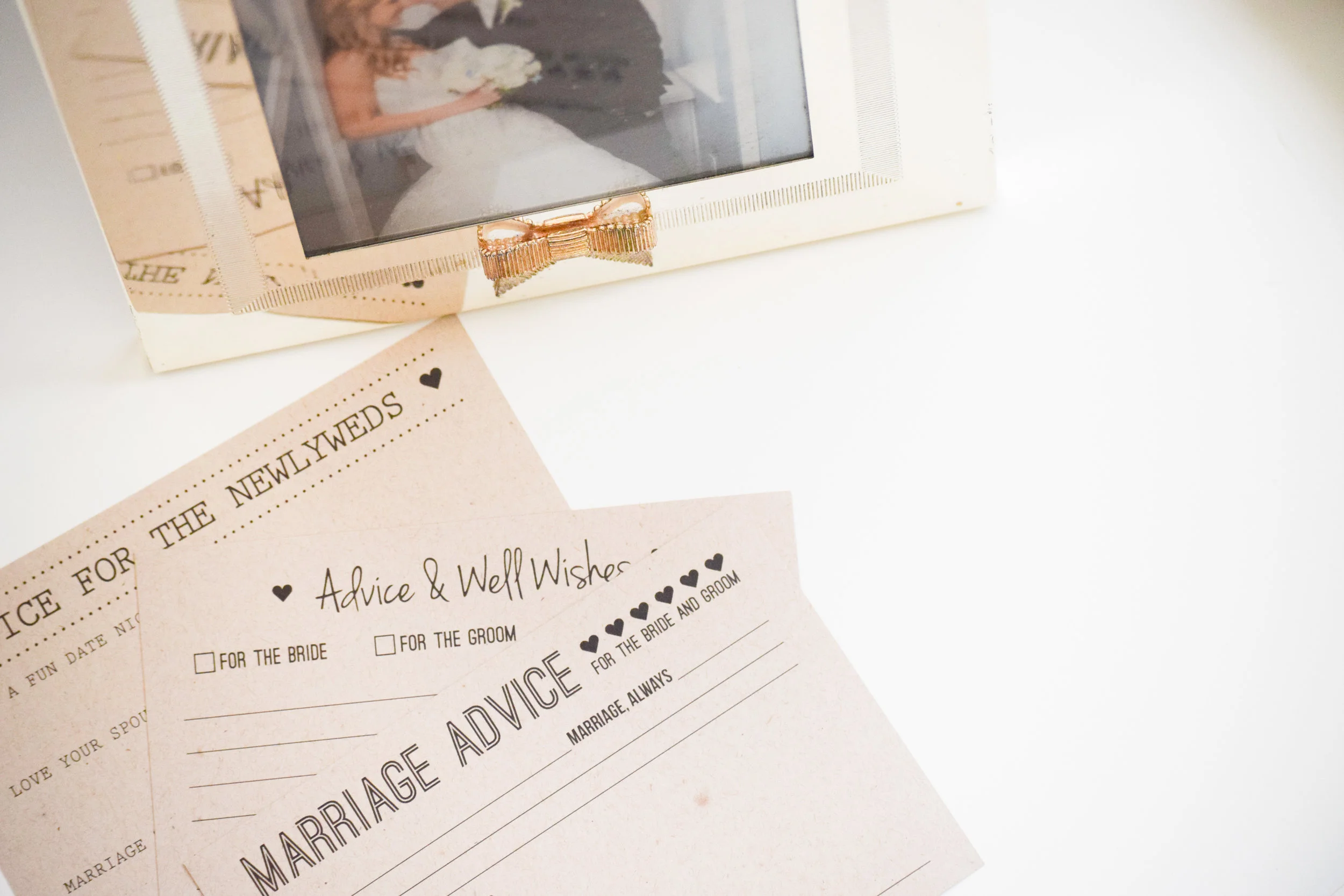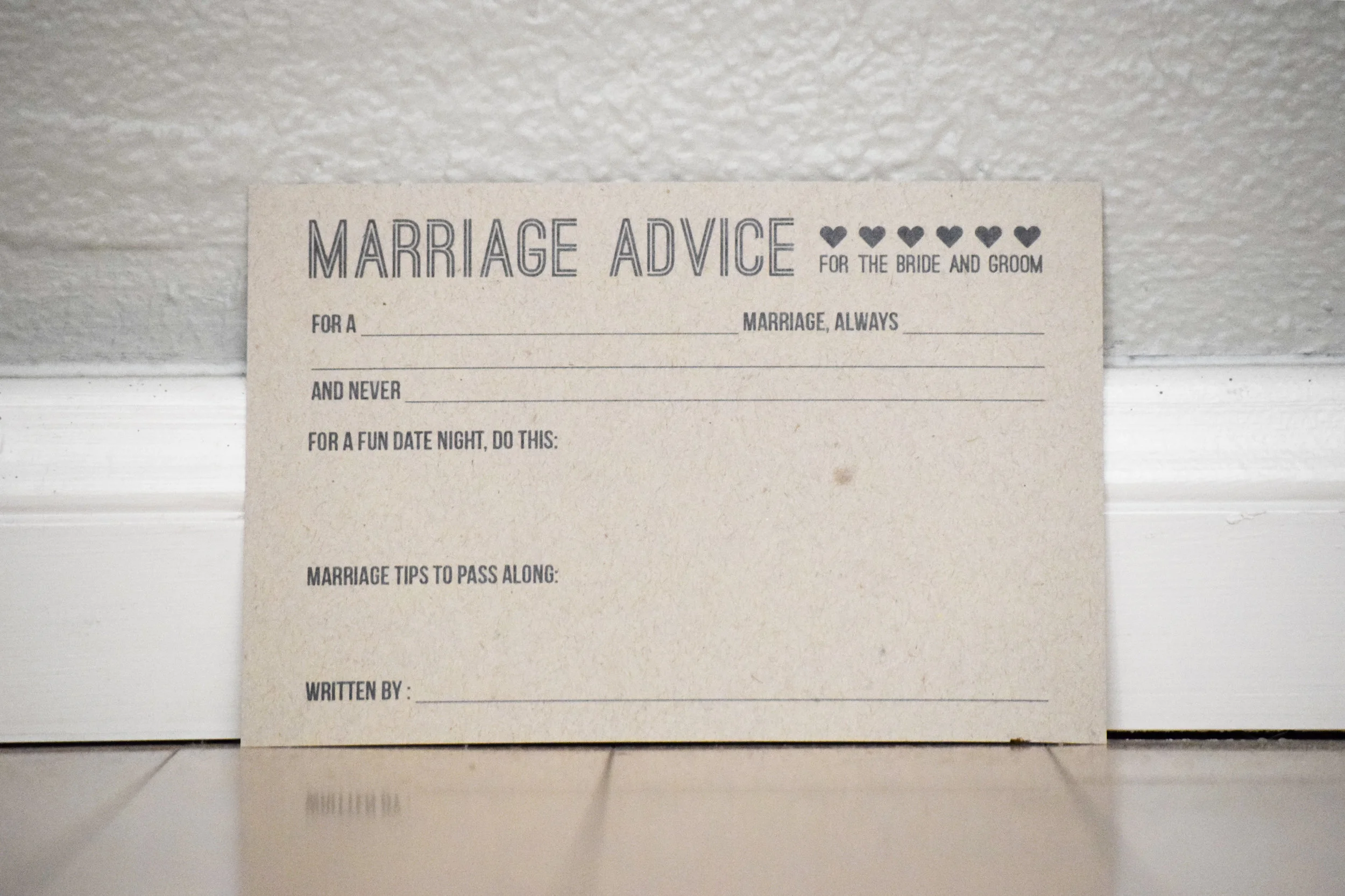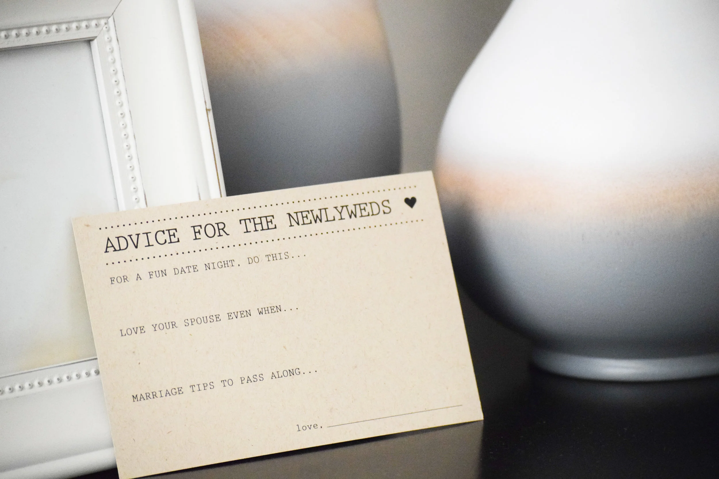 We're all about guest book alternatives because they're fun (for you and your guests) and can actual be useful! And what better person to get marriage advice from, than your loved ones who are already married. Of course, some of your guests may not be there yet, but that's half the fun...and I'm sure those will give you a great chuckle. So if you're looking for a great guest book alternative idea, I think I've found it! for you!